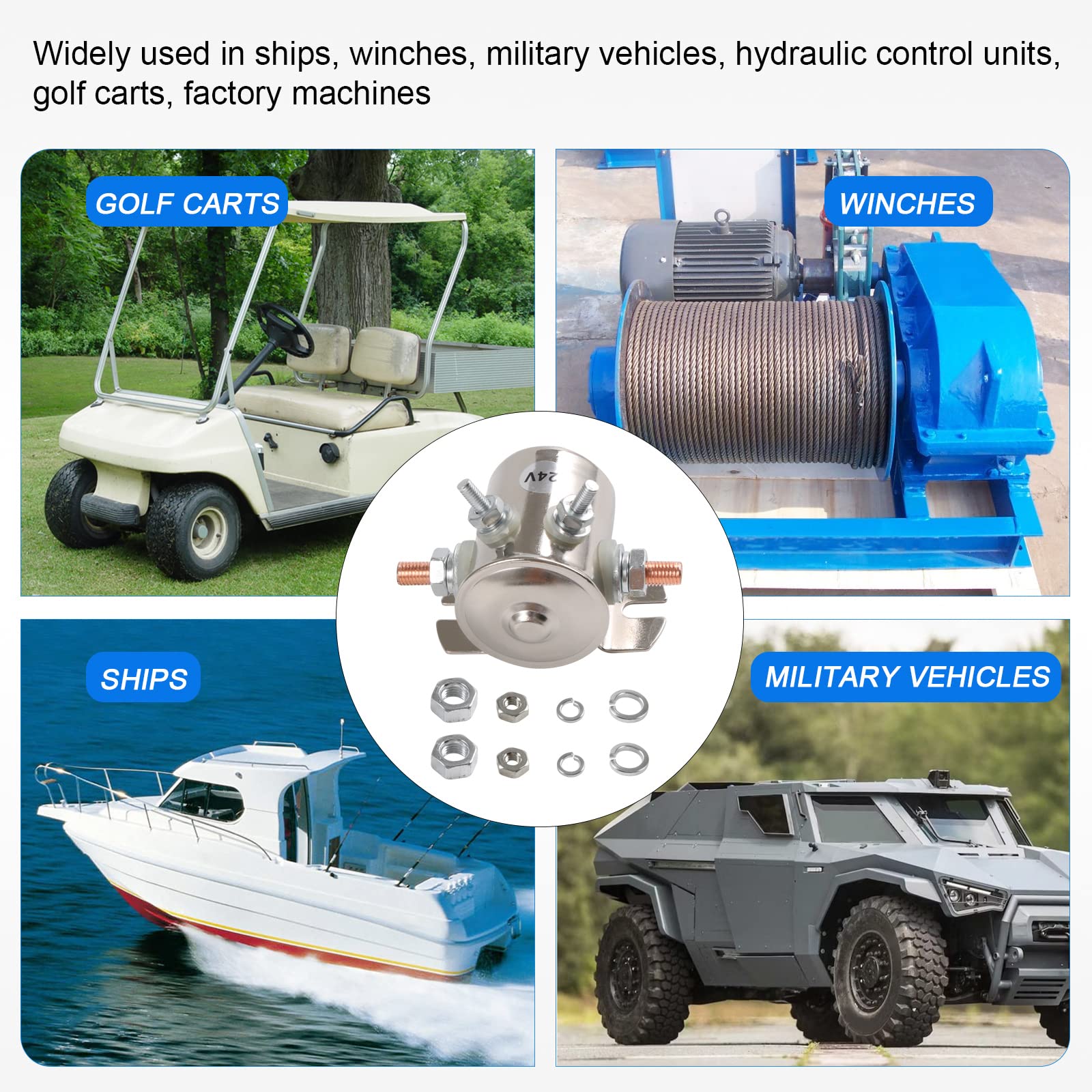 ✦ 【Materials】4 Terminal Max 200A 24 Volt With 2 Copper Point Continuous Duty Solenoid Relay ,The The electromagnetic relay adopts high-quality components, Coil Roll is using 180℃ copper wire, Cover is Nickel-Plating, The Nickel-Plating outer layer and the inside of the canned coil, Sealed Unit Protects Solenoid From The Elements Helping Prevent Corrosion