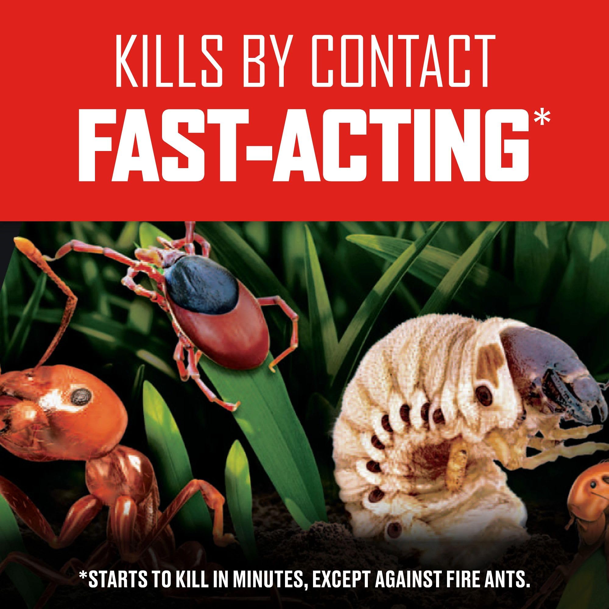 FAST-ACTING BUG BARRIER: This pest control product starts to work in minutes (except against fire ants) to protect your lawn, ornamental plants, home perimeter, flower beds, and listed vegetable plants
