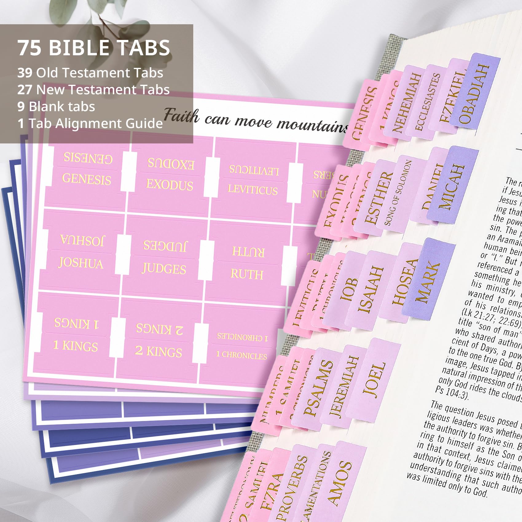 Enhance Bible Study with Quick Navigation - Effortlessly organize your Bible with 39 tabs for the Old Testament, 27 for the New Testament, and 9 blanks for personalization. Enhance your study, quickly finding any book you need. Dive into scripture with ease and purpose.