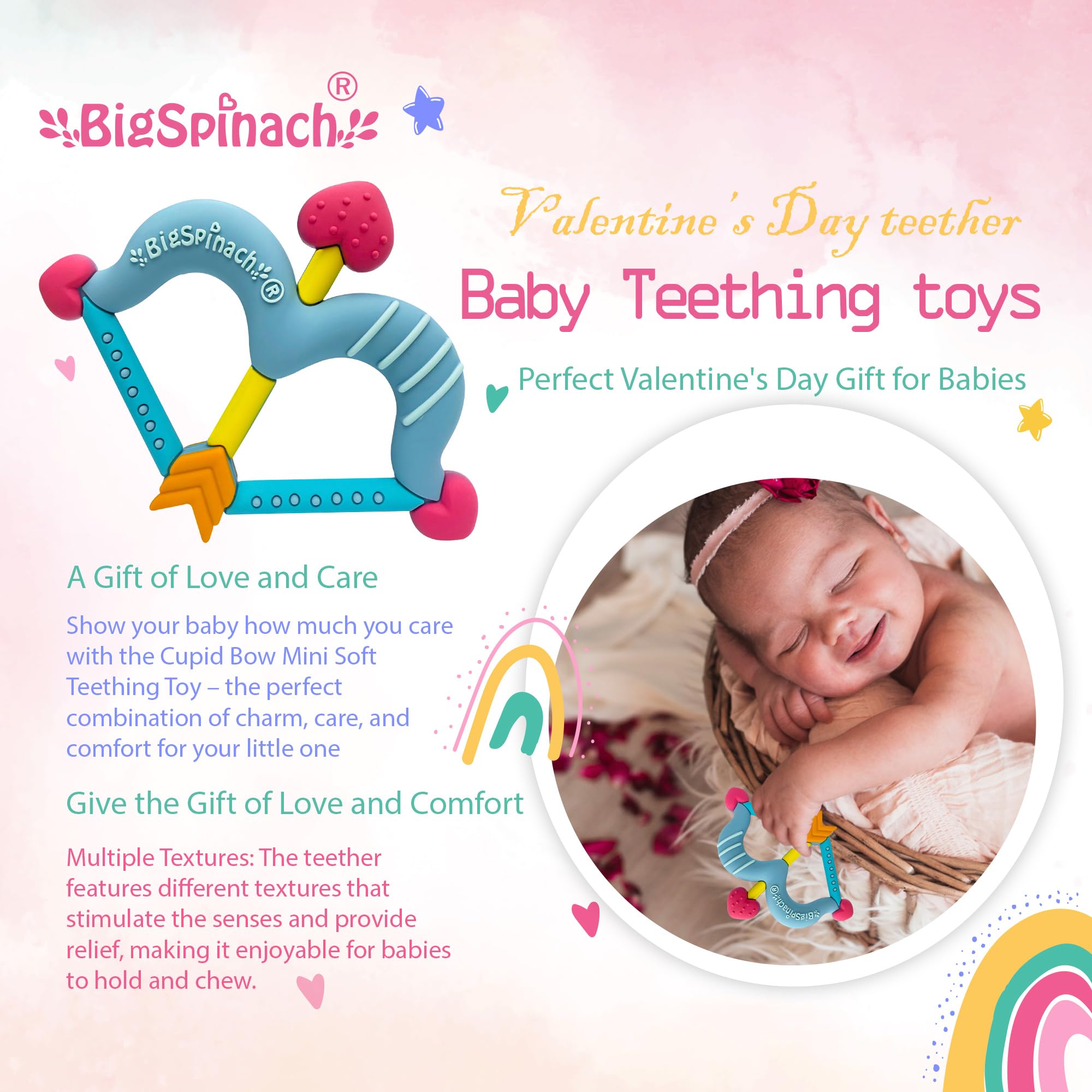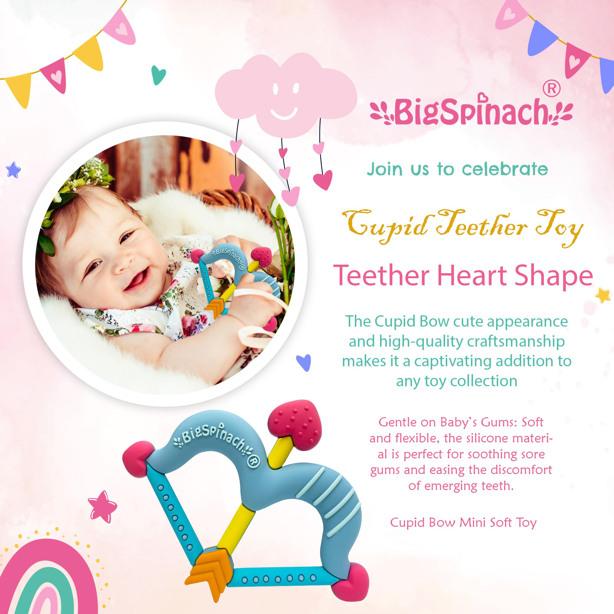 Make this Valentine’s Day extra special – choose the Cupid Bow Mini Soft Teething Toy and let love shine through!
