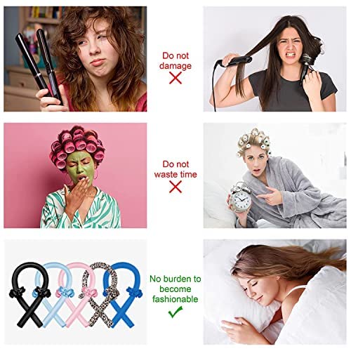 【No Heat Curlers】Heatless curler is to give you a new way of curling your hair created to get beautiful bouncy curls without damaging your hair with heat.