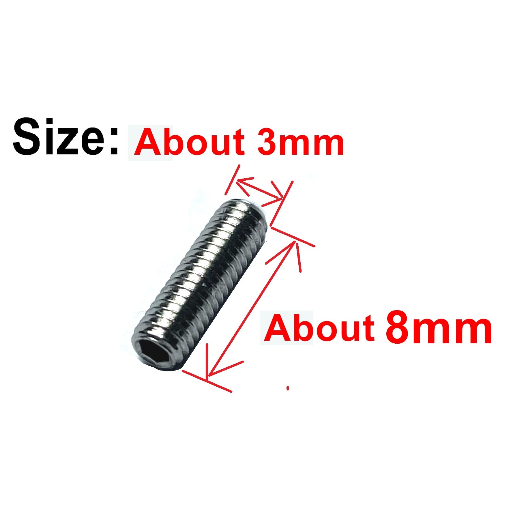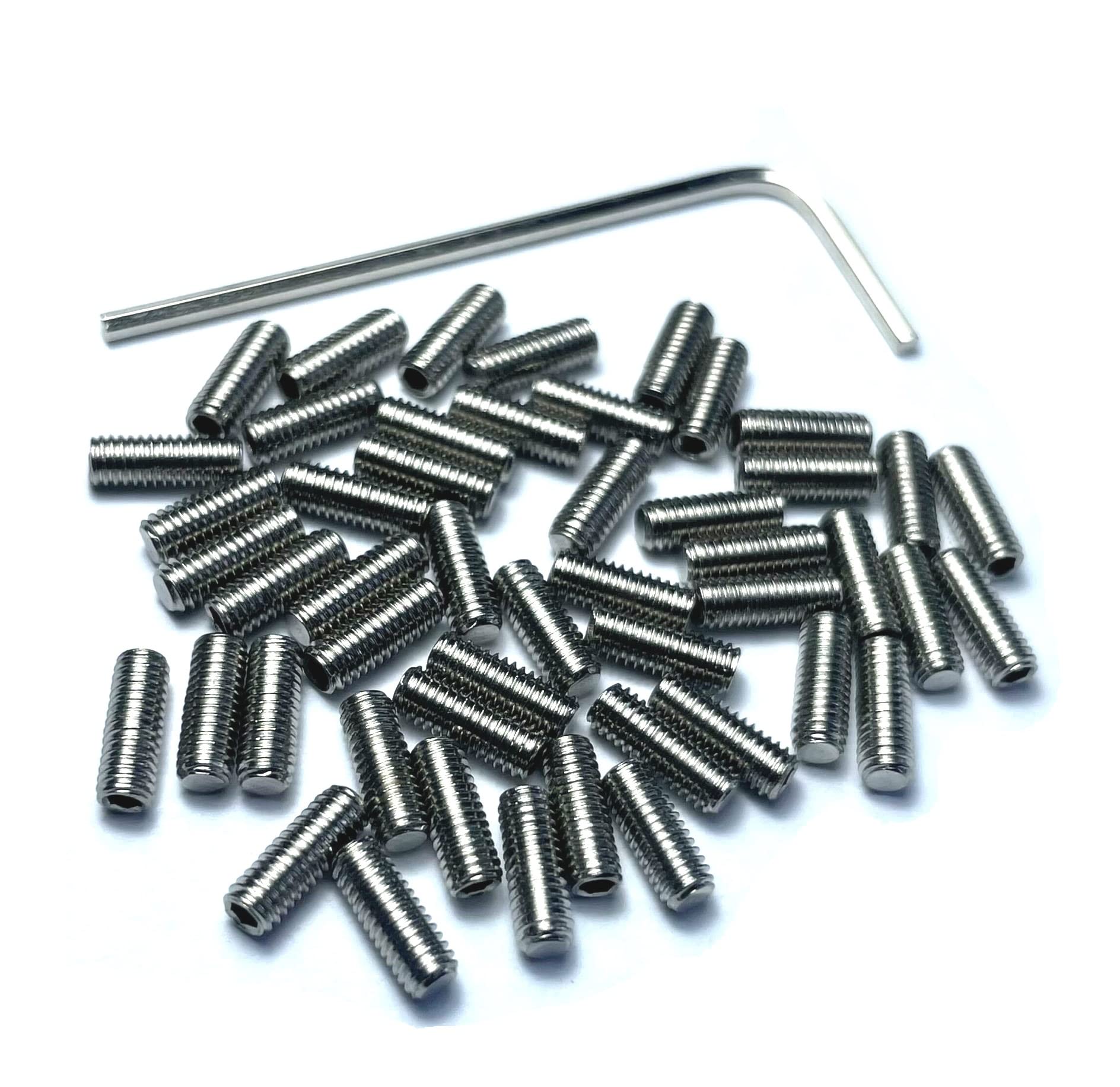 The 50PCS SET SCREWS and 1pcs WRENCH: Package includes 50pcs set screws with 1 bonus corresponding hex drive key, offering ease of use by hand. For more size detail, please see the pictures