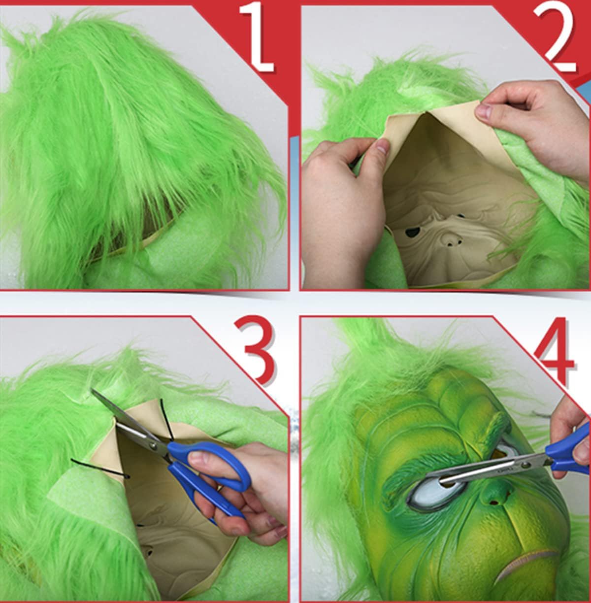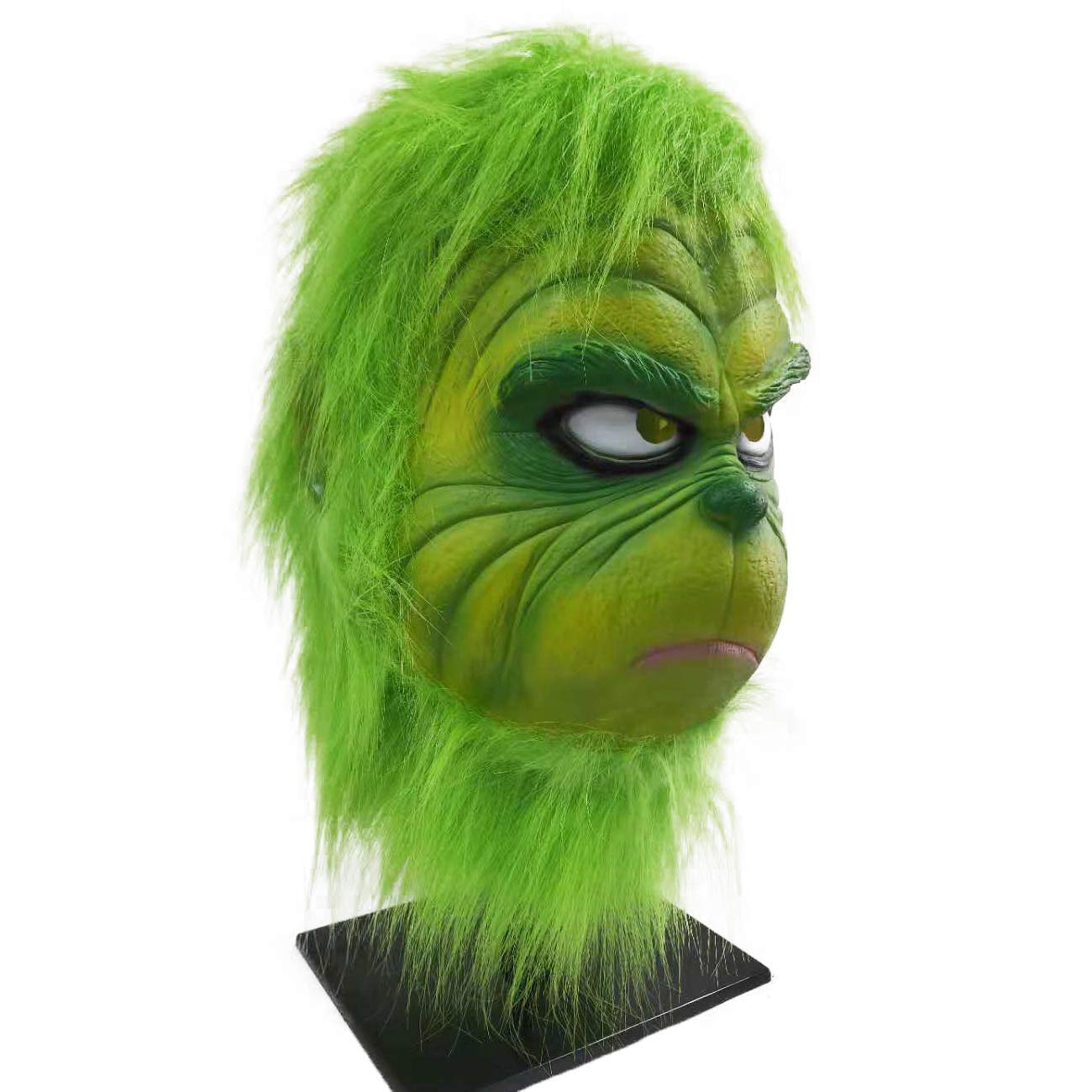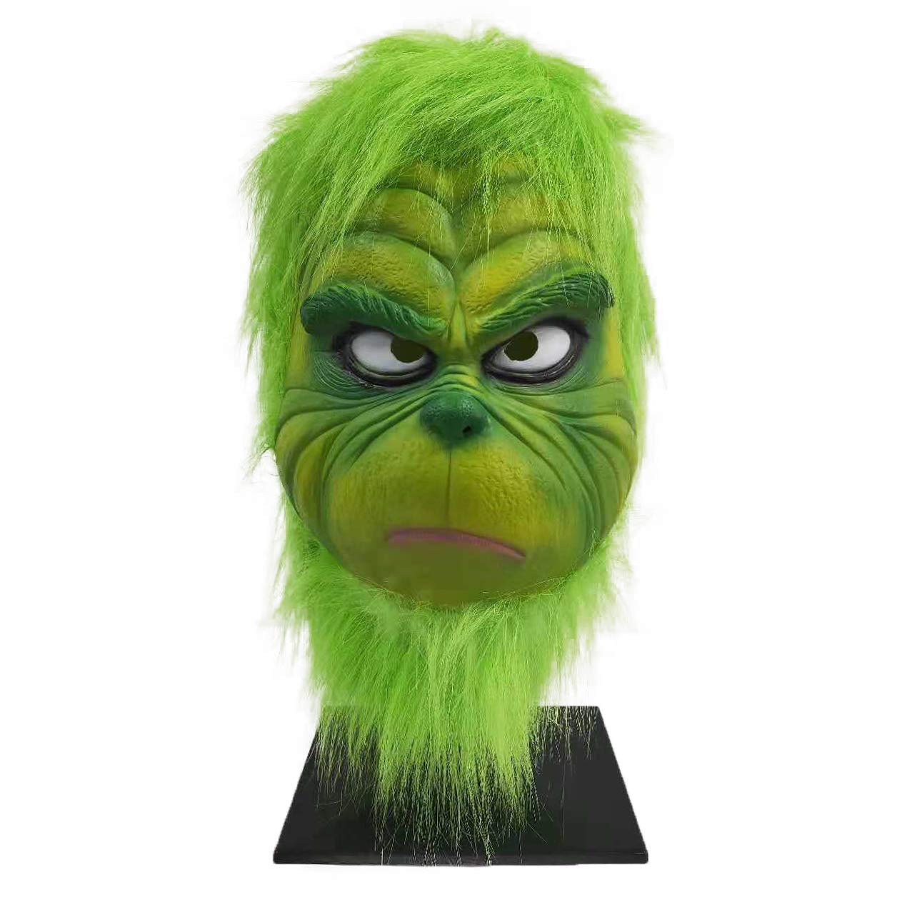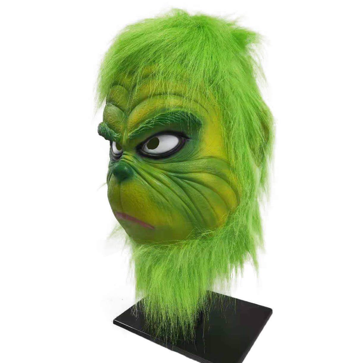 The green monster head mask is realistic and terrifying, with a funny and novel design. It is a 1:1 movie role-play replica. It is a must-have Christmas role-play mask for Christmas parties.