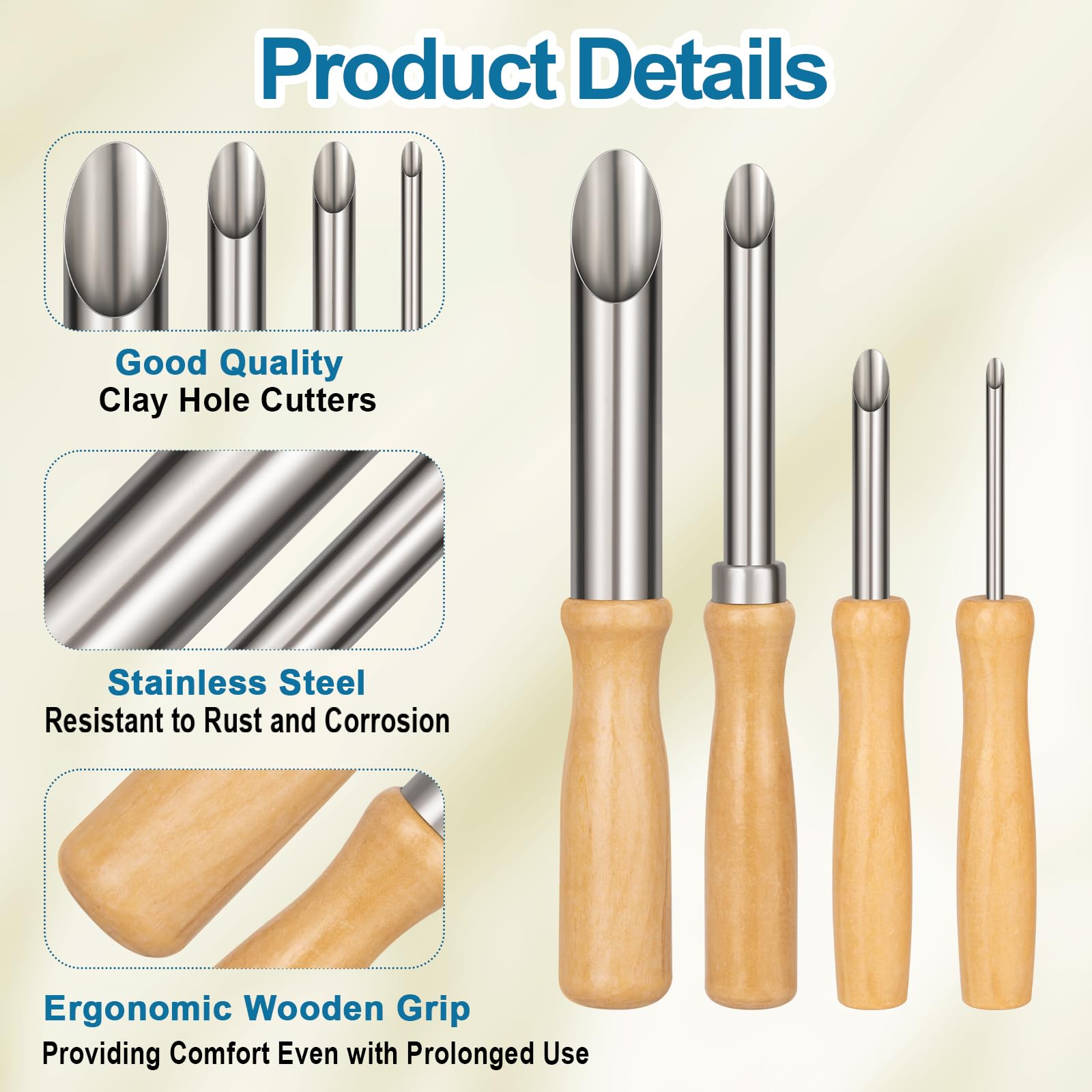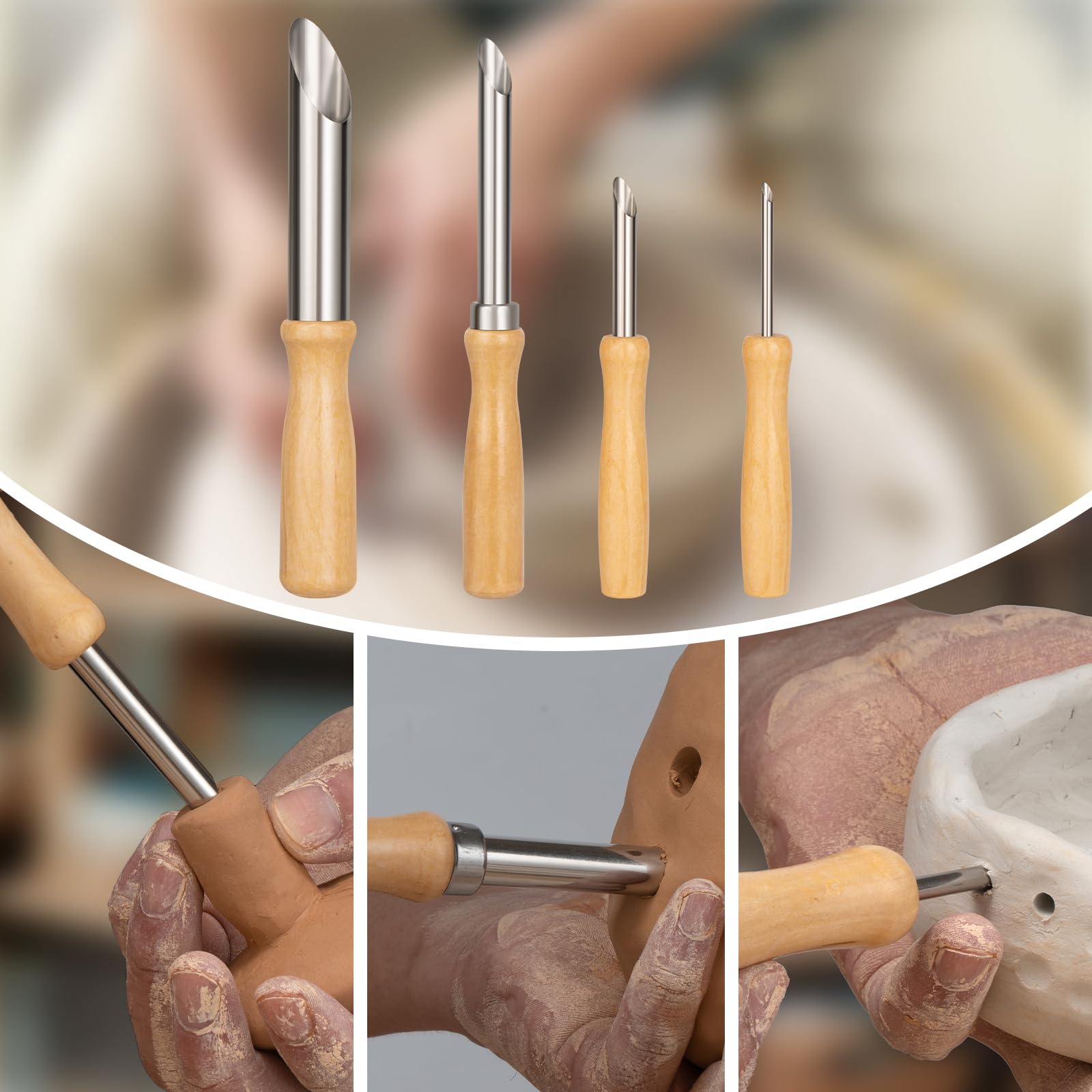 MULTI FUNCTIONAL: 4 PCS punching set enables detailed work on your ceramic art projects, meeting your needs for creating beautiful pottery and clay works. Ideal for making drink straw holes, pottery, clay sculptures and more