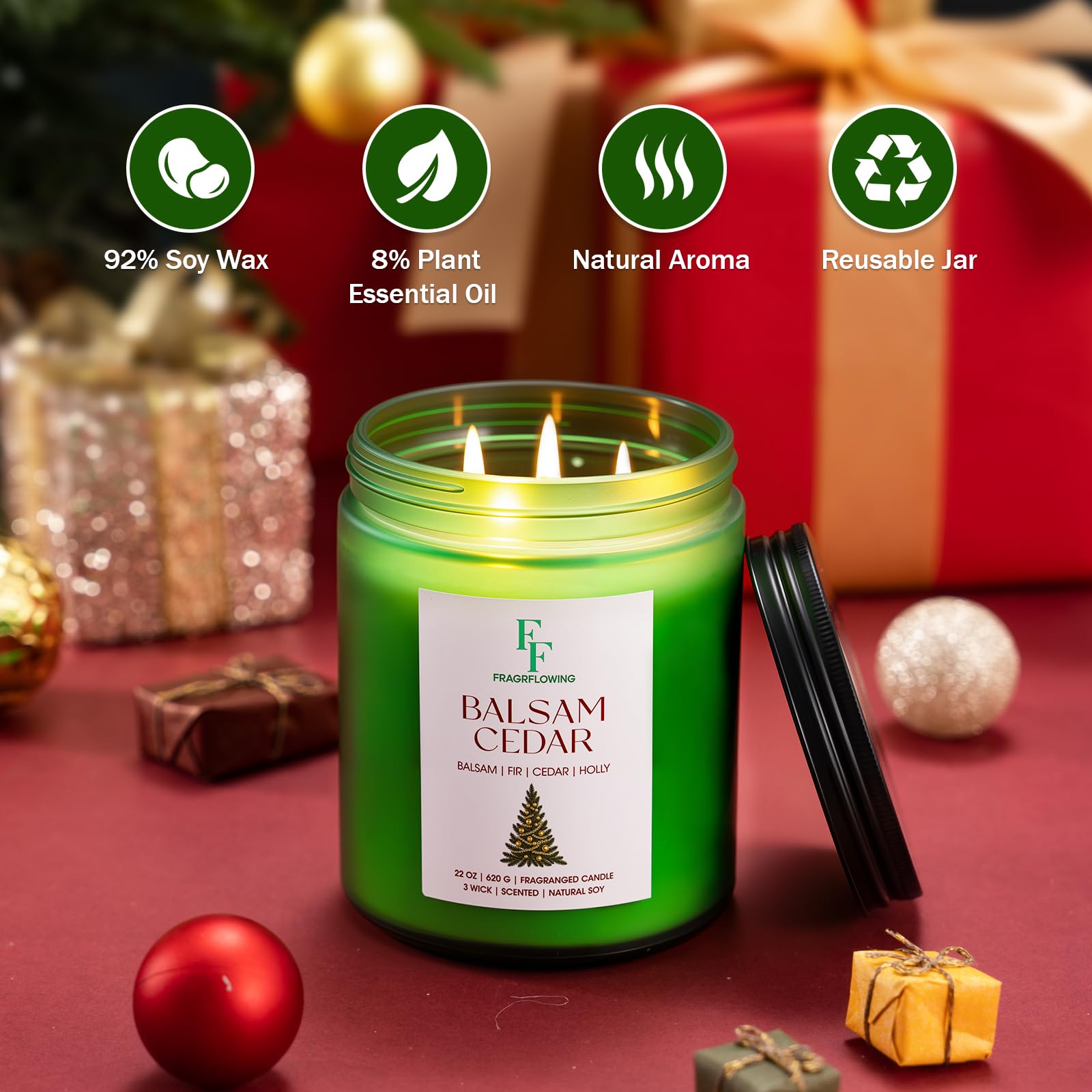 Generous 22oz Holiday Candle: Designed to illuminate the entire season, this 22oz Christmas candle offers 90-100 hours of continuous festive fragrance. Let the rich, woody aroma of Balsam Cedar wrap your home in warmth and comfort, creating a long-lasting holiday ambiance that keeps the Christmas spirit alive throughout the celebrations