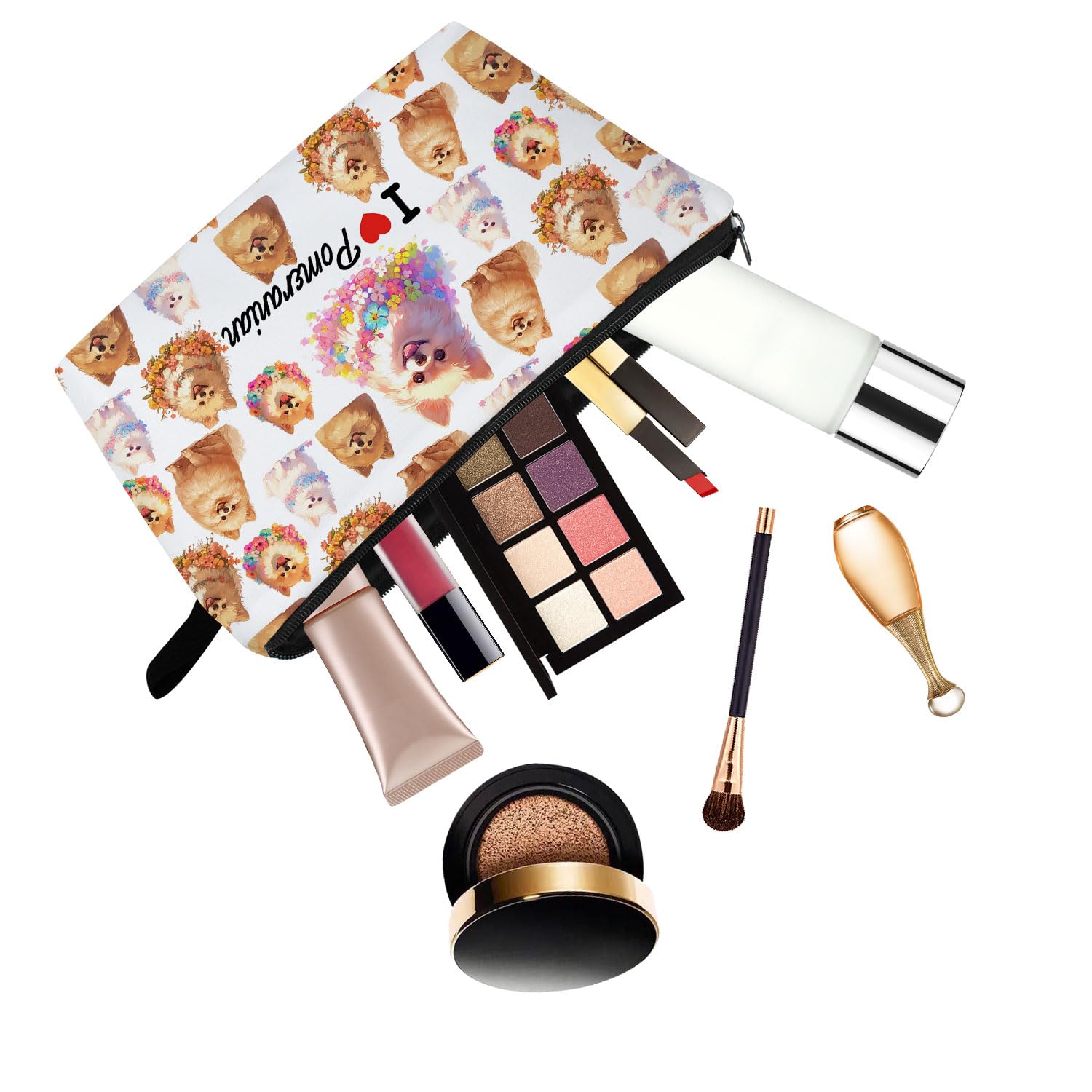 Description YULUENZE Funny Pomeranian Makeup Bag for Women. The makeup bag is made from soft polyester with a metal zipper and has a perfect size. The printed patterns on the bags are colorful and vivid. The makeup bag is durable, cute, practical and multi-functional. It is able to hold your makeups, toiletries, brushes, art tools, mobile phones, coins, keys, cards, medicines and so on.