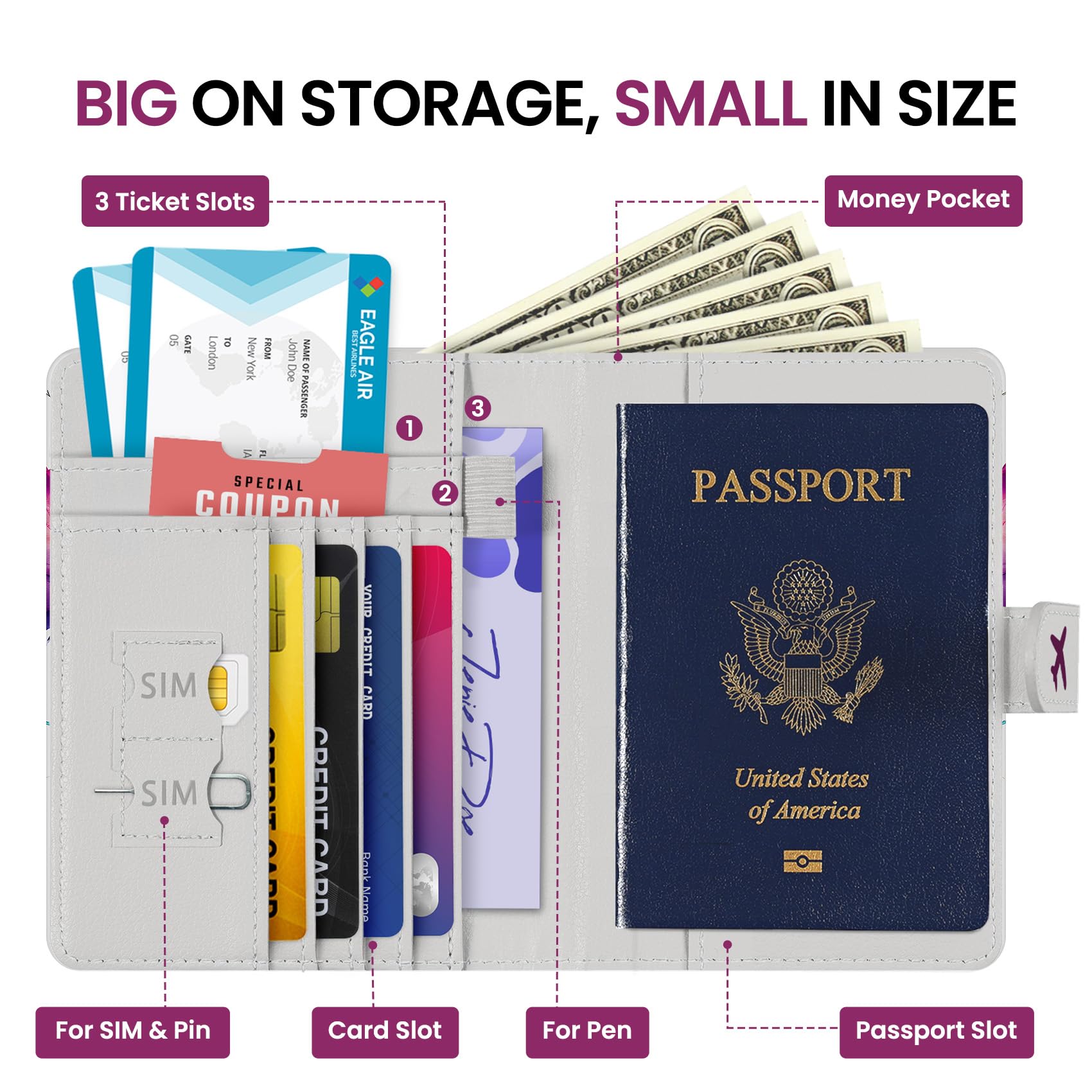 Instant Access & Magnetic Closure: Access your travel essentials in a snap. Our passport holder features a smooth magnetic closure for quick entry and secure storage - no more fumbling with zippers or snaps. Designed for effortless travel.