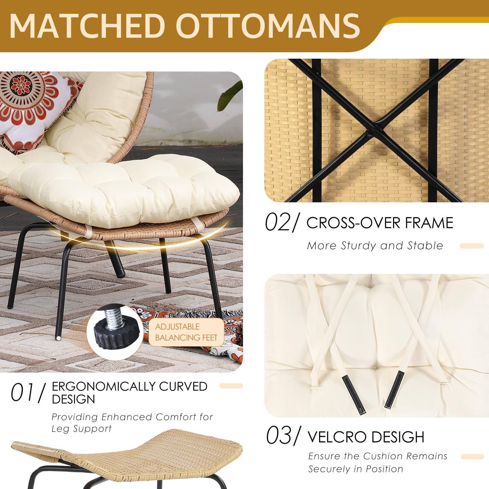 Included Footstools for Extra Comfort: Enhance your lounging experience with the included footstools; This lounge chair set comes with two matching ottomans, providing additional support and comfort; Ideal for relaxing, reading, or napping, these footrests complete your relaxation setup