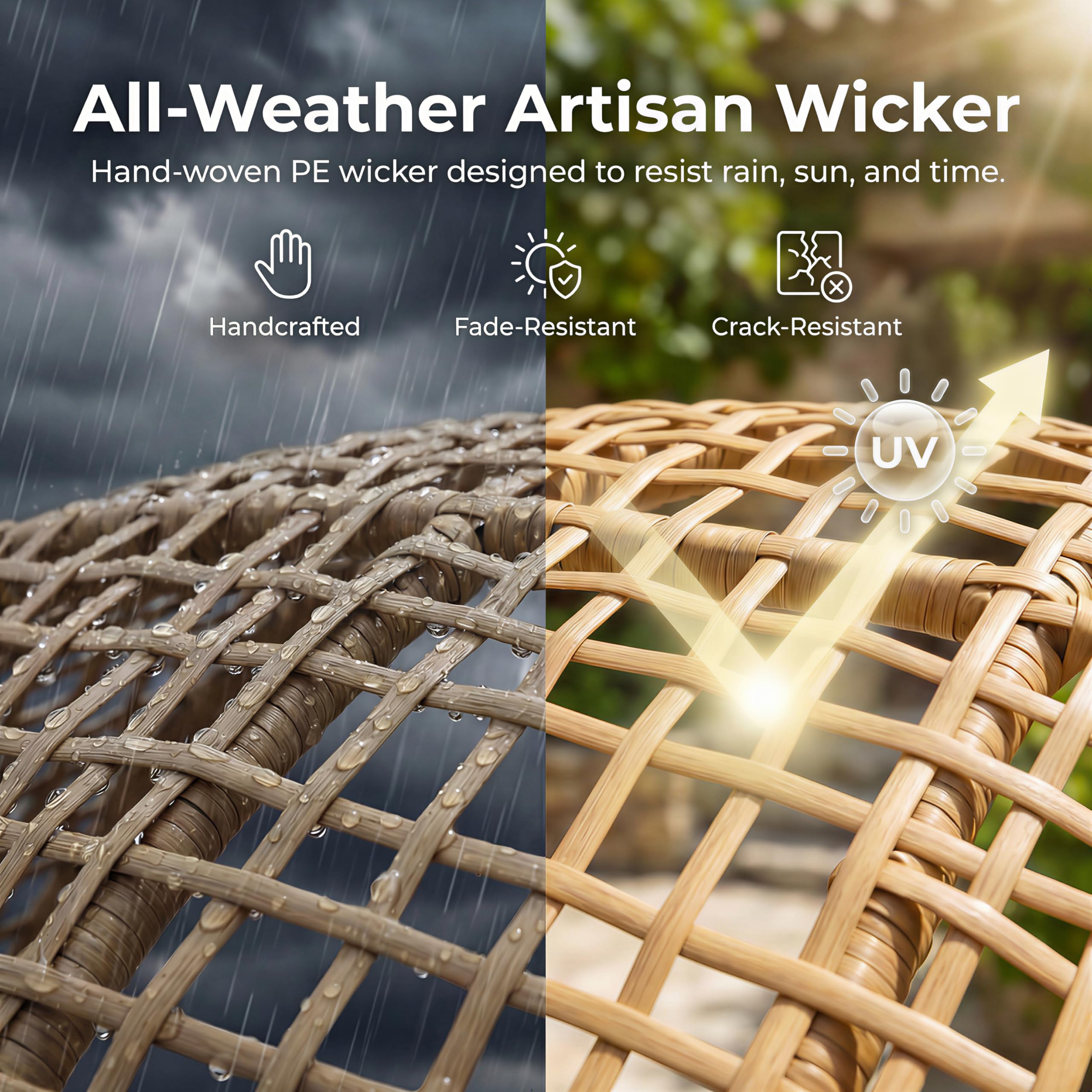 Artistic PE Wicker Design: Elevate your decor with the oversized egg chair's unique PE wicker design; Featuring intricate grid weaving, this chair is not just a seating solution but a striking piece of art; Its distinctive appearance adds a creative touch to any indoor or outdoor space, setting it apart from conventional patio lounge chairs
