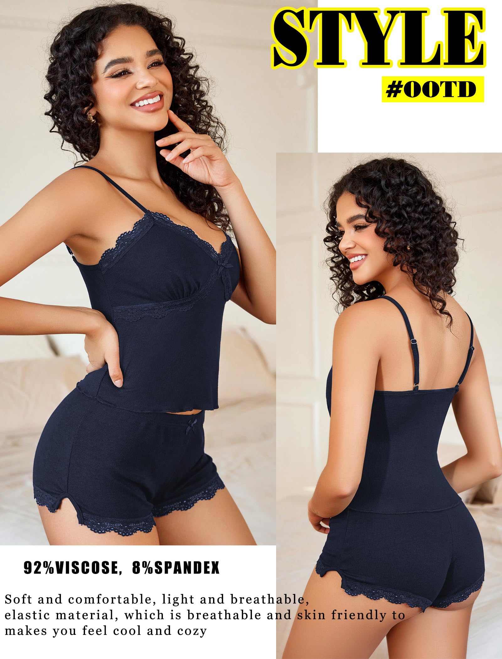 【Sexy Pajamas for Women】Sexy pajama set for women is made of 92% Viscose and 8% Spandex. Silky to the touch, super soft, sexy, breathable and comfortable, skin friendly, making you sleep well