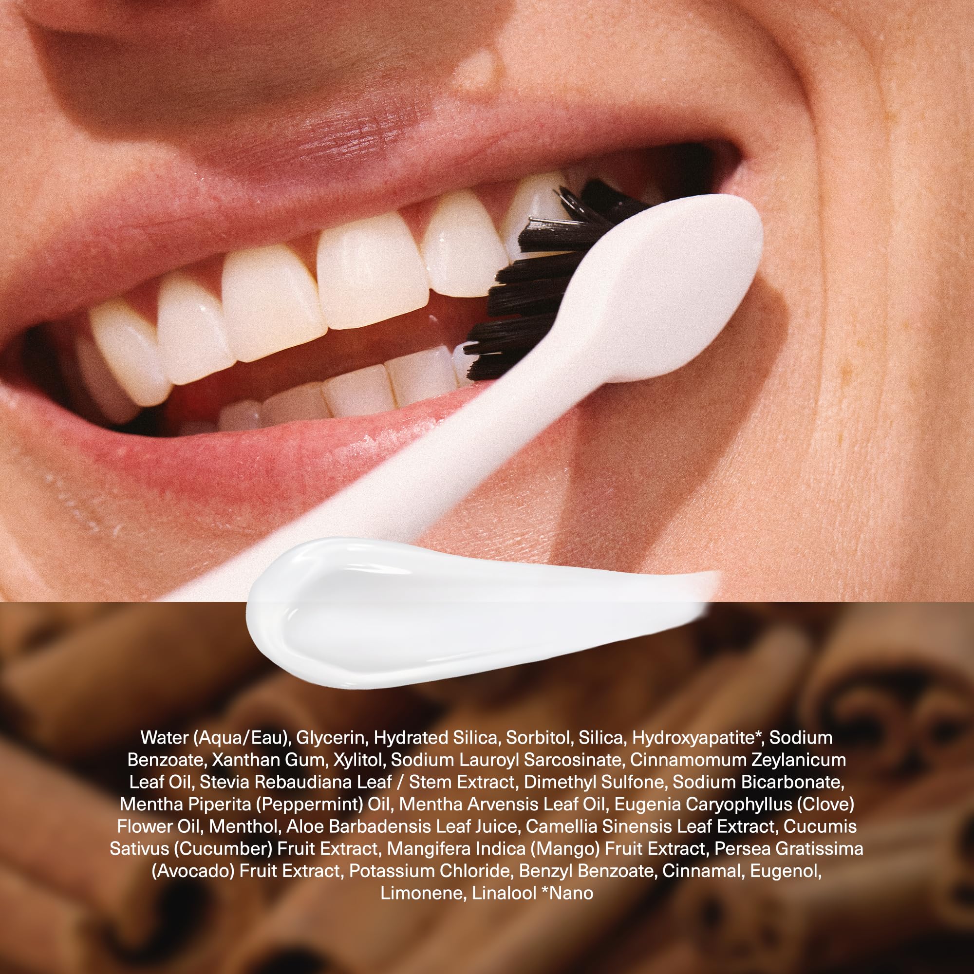 ENAMEL CARE: Our proprietary and innovative formula includes Nano-hydroxyapatite (n-Ha) - a biomimetic mineral form of the same ingredient that naturally makes up 97% of your enamel and 70% of your dentin. n-Ha has been the subject of significant research for decades with a wide variety of potential benefits across dentistry and oral care.