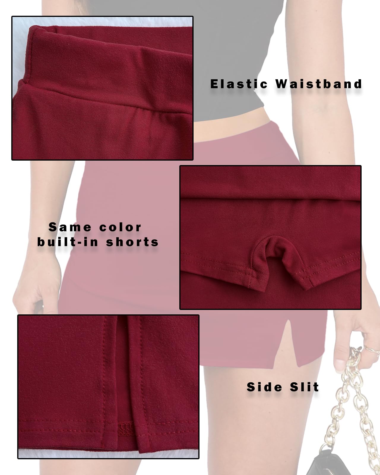 Features: This skirt features built-in shorts with a side slit design. The waistband incorporates hidden elastic encased within the fabric. During movement, the slit may reveal a subtle peek of the inner shortsβbut rest assured, their color perfectly matches the outer fabric. This intentional detail adds a tasteful accent to your look