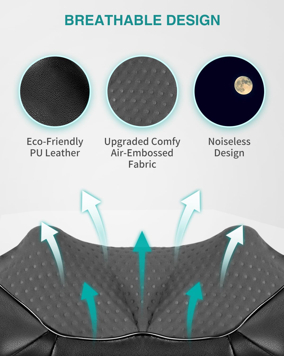 Ergonomic & Portable Design: Unlike bulky models, this Nekteck neck massager is compact and ergonomically designed to fit your neck perfectly. Weighing only 3.79 lbs, it's lightweight and easy to handle. The breathable air-layer fabric and soft faux leather ensure comfort while you enjoy your massage.
