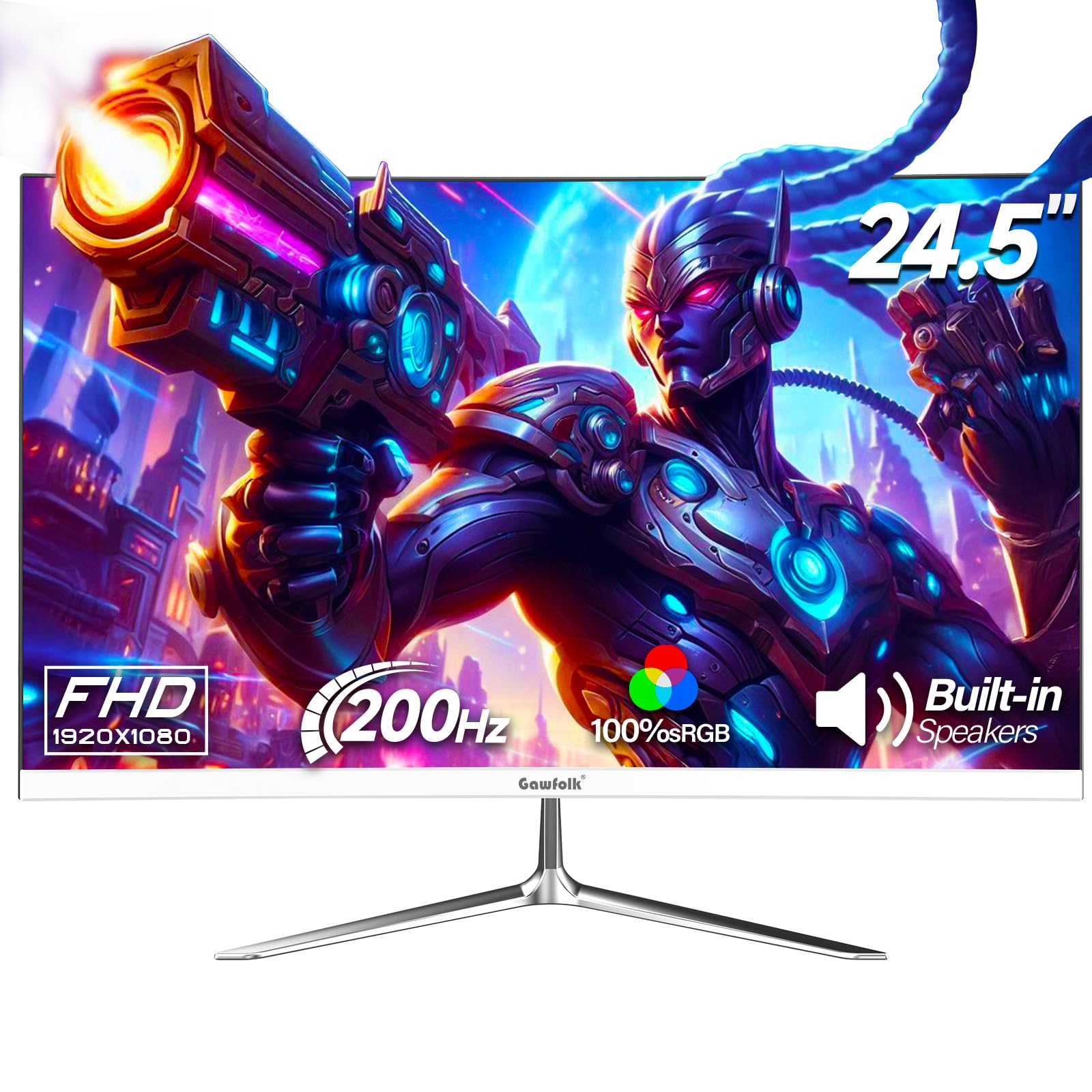 200HZ GAMING MONITOR - Gawfolk 24.5 Inch gaming monitor combines high resolution with an impressive 200Hz refresh rate. Enhanced by freesync technology, it effectively eliminates tearing and freezing, ensuring crystal-clear video playback for an exceptional gaming experience