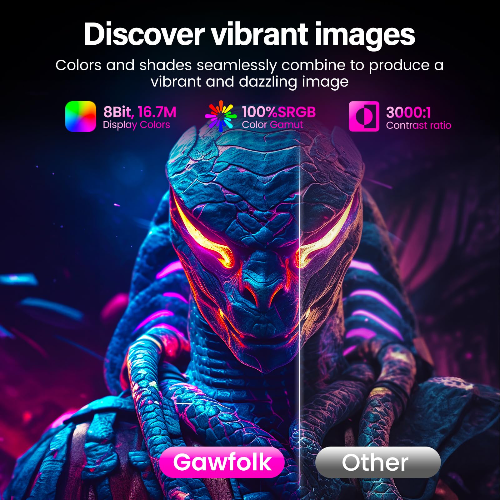 VISUAL QUALITY - Gaming Computer Monitor offers a vibrant visual experience with 8-bit color depth, an extensive 16.7 million color gamut, a dynamic 3000:1 contrast ratio, and full coverage of the sRGB spectrum. Immerse yourself in rich, detailed colors that bring your gaming and visuals to life