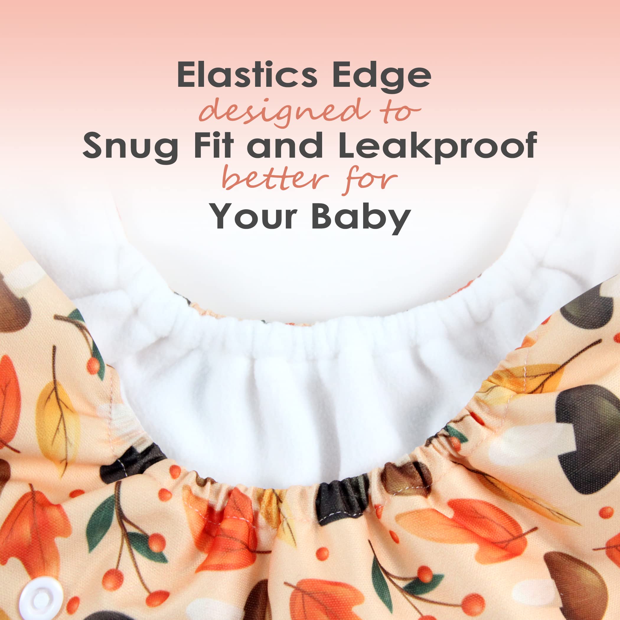 Absorbent and Soft Insert: Inserts are made of 2 layers of microfiber and 2 layers fiber, the strong absorbent material with breathability and softness is gentle on your baby’s bottom, keep your baby comfortable and happy; The inner suede cloth touches baby, and wicks moisture away from baby's bottom to the insert