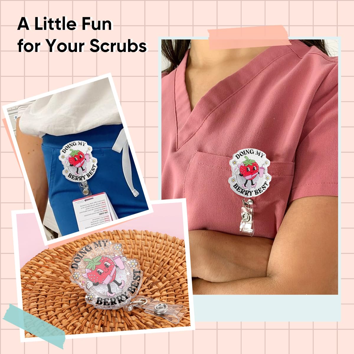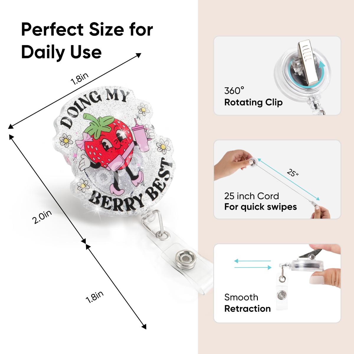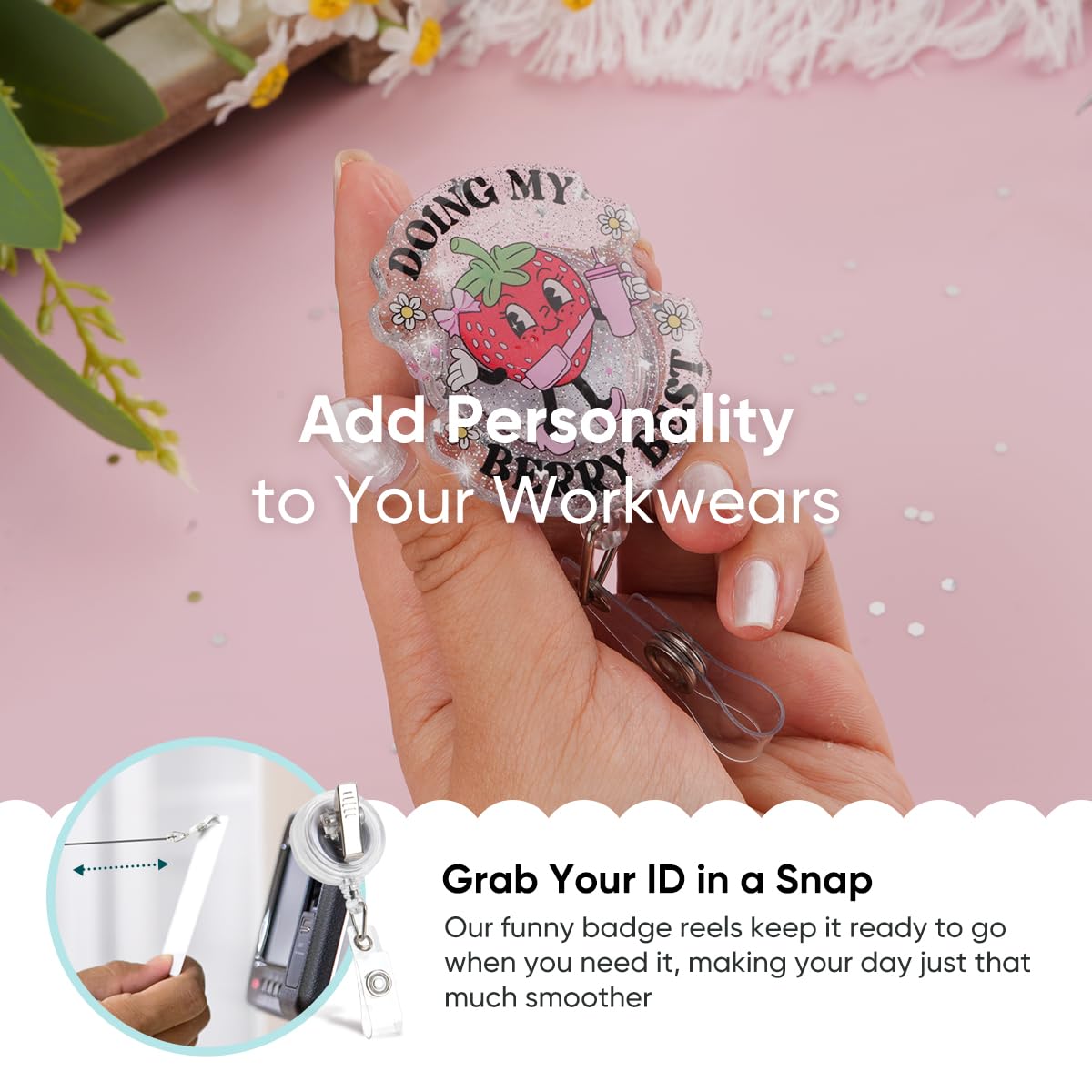 Doing My Berry Best Badge Reel, Mental Health Badge Holder, Funny Sassy Badge Reel, Interchangeable ID Retractable Badge Reel for Nurses RN EN Doctor Paramedic Teachers Medical Office Womens Man