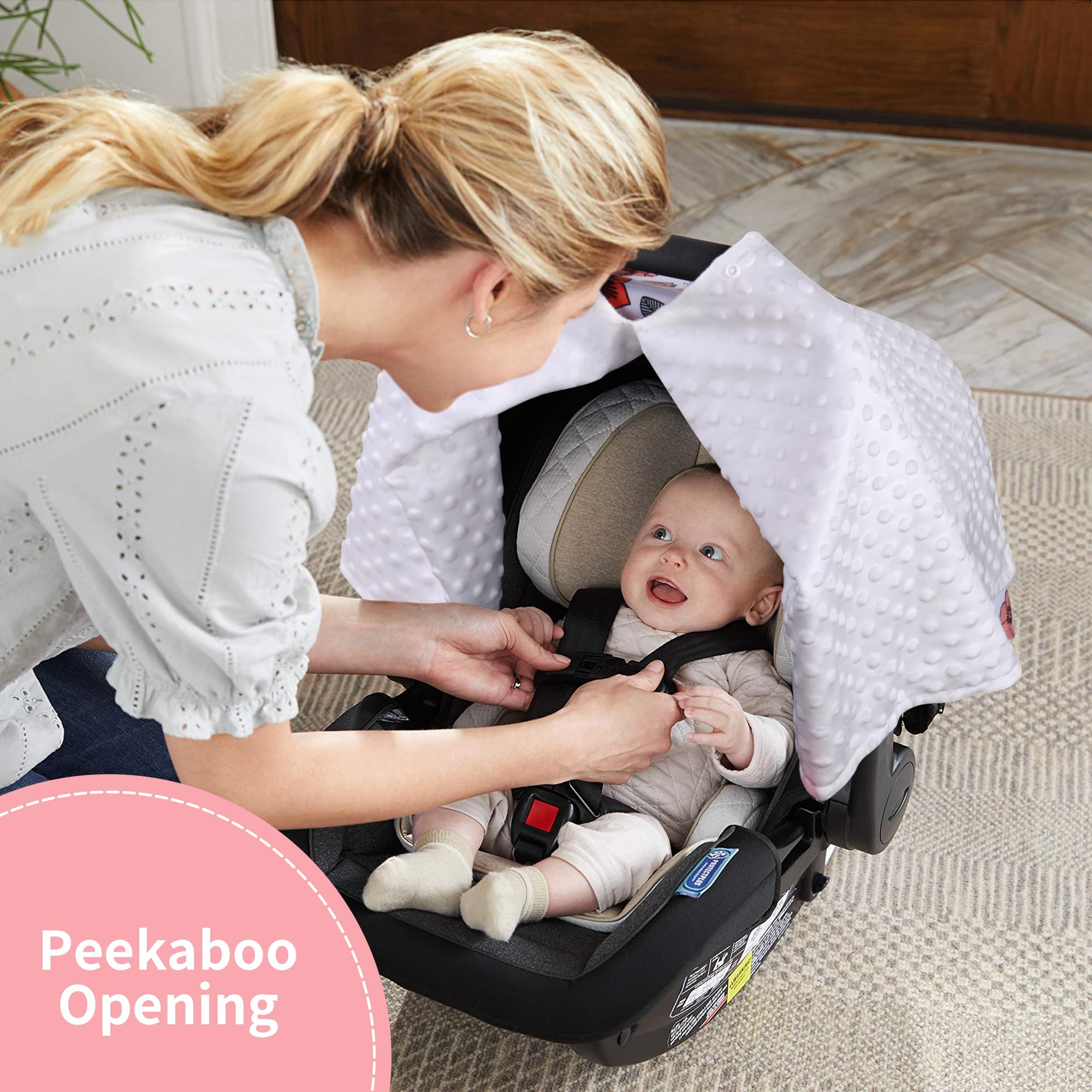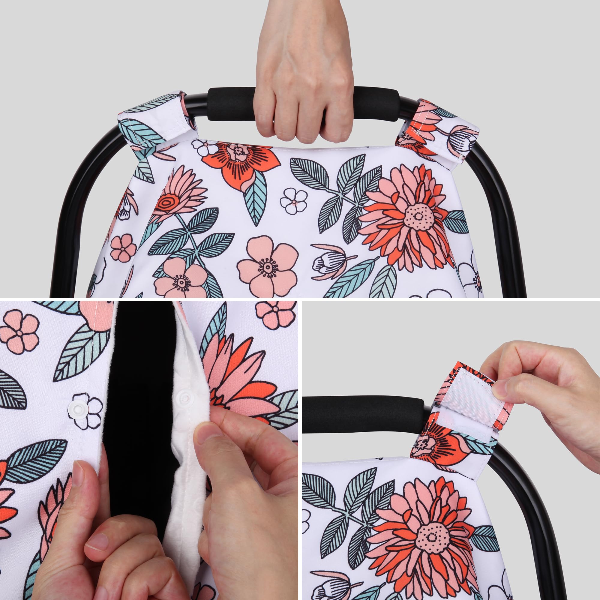 EASY TO USE: The durable Velcro straps are positioned on the carseat canopy for the ability to secure to baby carrier handle quickly. It's easily install and remove. Extra large universal size to fit all multiple brands of infant car seats or strollers