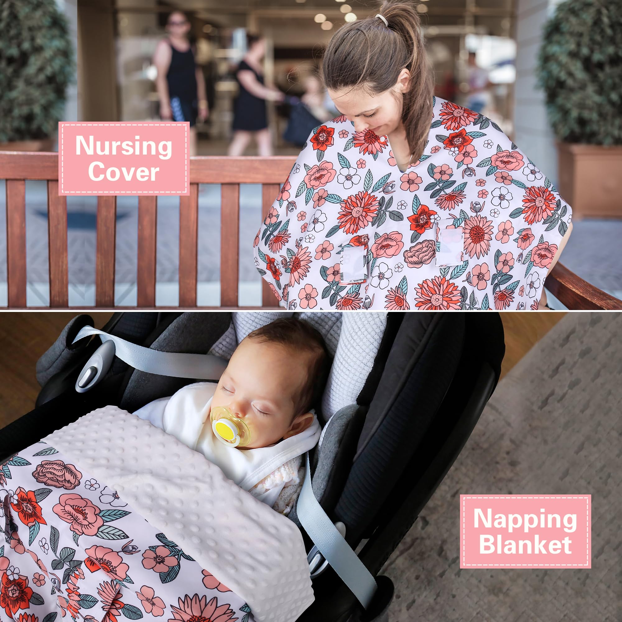 VERSATILE: Rquite baby carrier cover is a newborn essentials that goes from canopy to mom nursing cover quickly. When you take the canopy off, it doubles as a baby blanket or play mat, its a win-win. There are many more uses waiting for you to discover