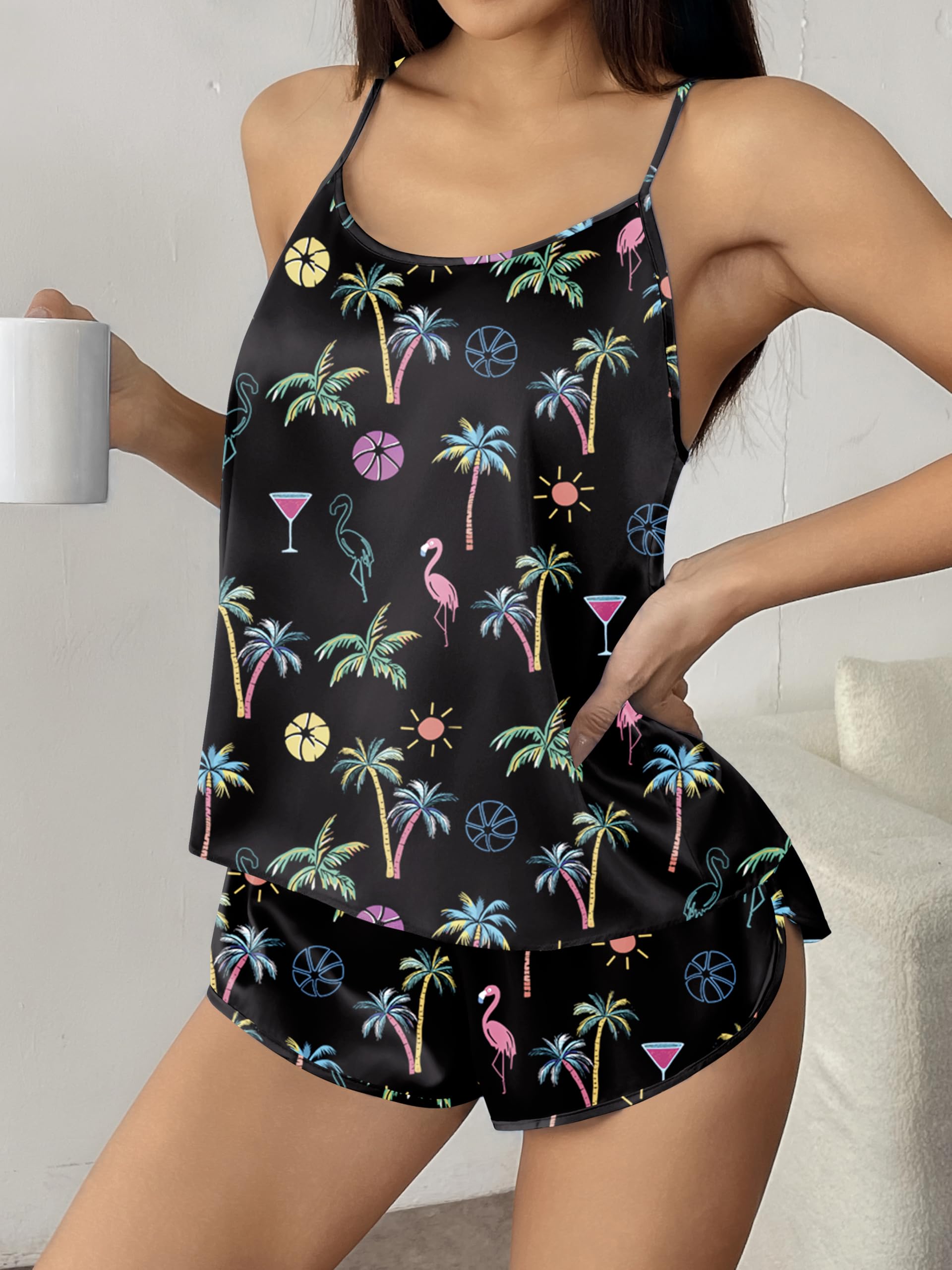 SATIN CAMI PAJAMA SET FOR WOMEN: Playful Print Silk pajamas for women - 95% polyester/5% spandex satin cami set with silky texture. Breathable, soft-stretch, wrinkle-resistant & easy-care for year-round sleep & comfy loungewear