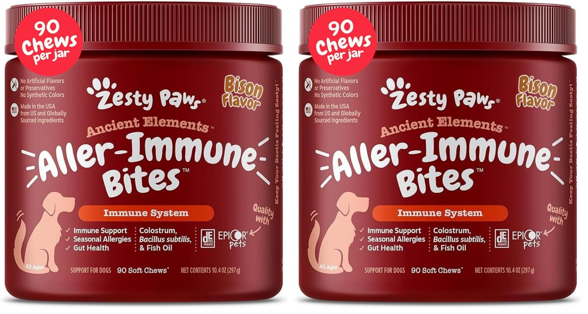 Immune Support – Ancient Elements Aller-Immune Bites are chewable supplements with premium ingredients for Fido's immunity and an ancient base of quinoa, millet, amaranth, and sorghum.