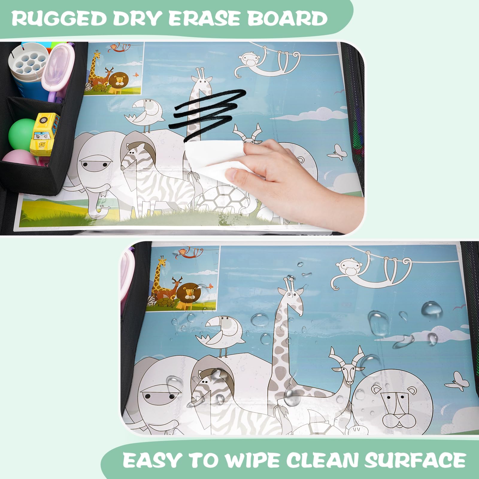 Powerful Storage Space: The car seat tray for kids travel equips with a cup holder, 2 zipper pockets, pen holders, and a collapsible storage compartment, allowed to hold snacks, and crayons, car seat toy. Large tablet stand holder fits most iPads or tablets while keeping the tablet from falling over bumpy road rides. It will be a perfect car seat tray for kids travel for satisfying needs of kids travel activities of all kinds - and also makes a gift choice for birthdays, or family love to travel