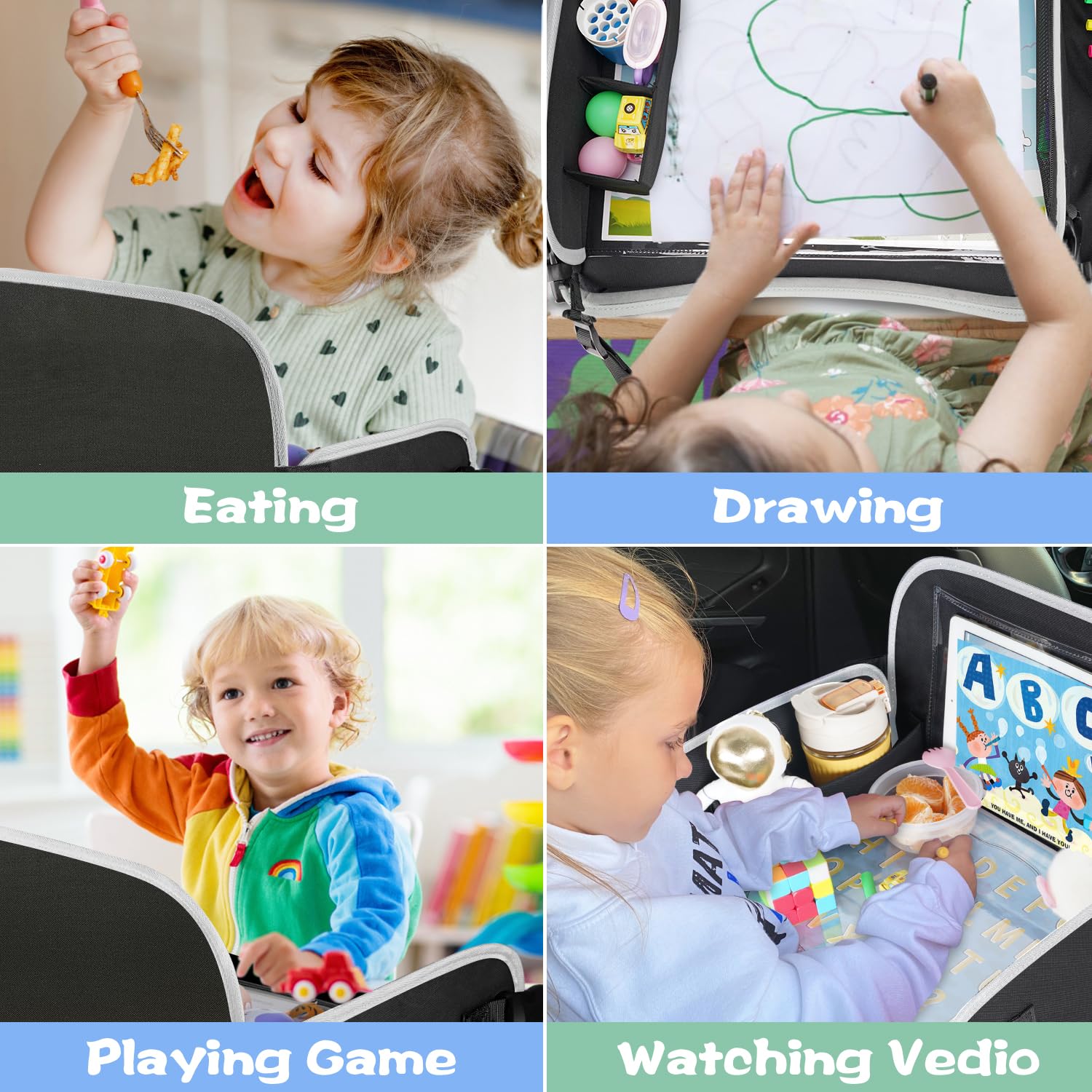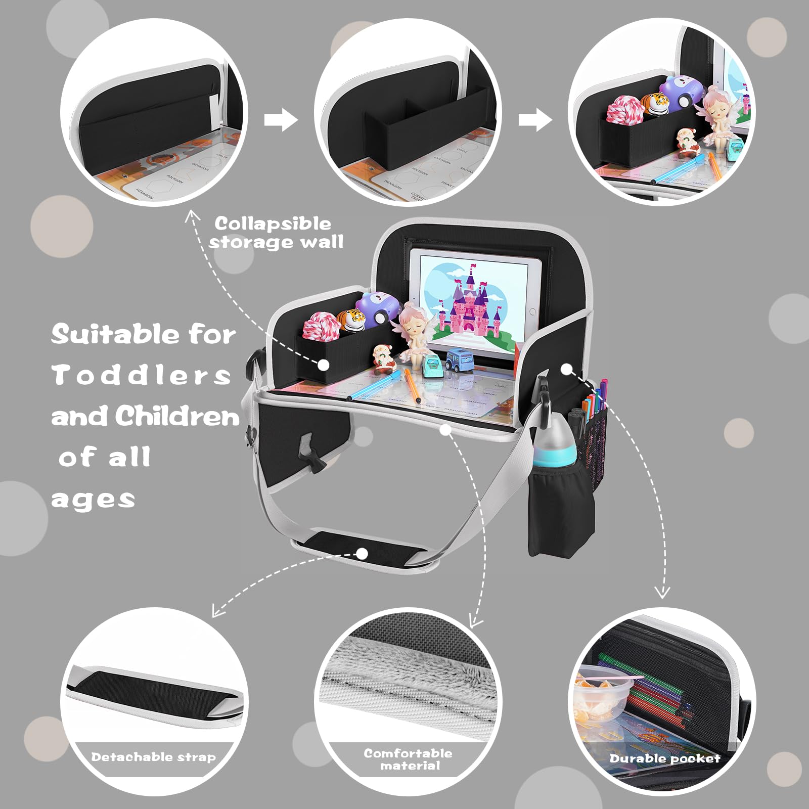 Best Protection For Your Kids: MENZOKE kids travel tray for car seat are made of Polyester 600 D without any smell. Strong toddler car tray and reinforced sutures enhance the durability of this kids car table that you could use in car, plane, stroller frequently. The warm design - raised soft edges and rounded corners will make children more comfortable - it not only ensures safety and convenience but also makes a considerate and practical gift for toddlers and families who love to travel