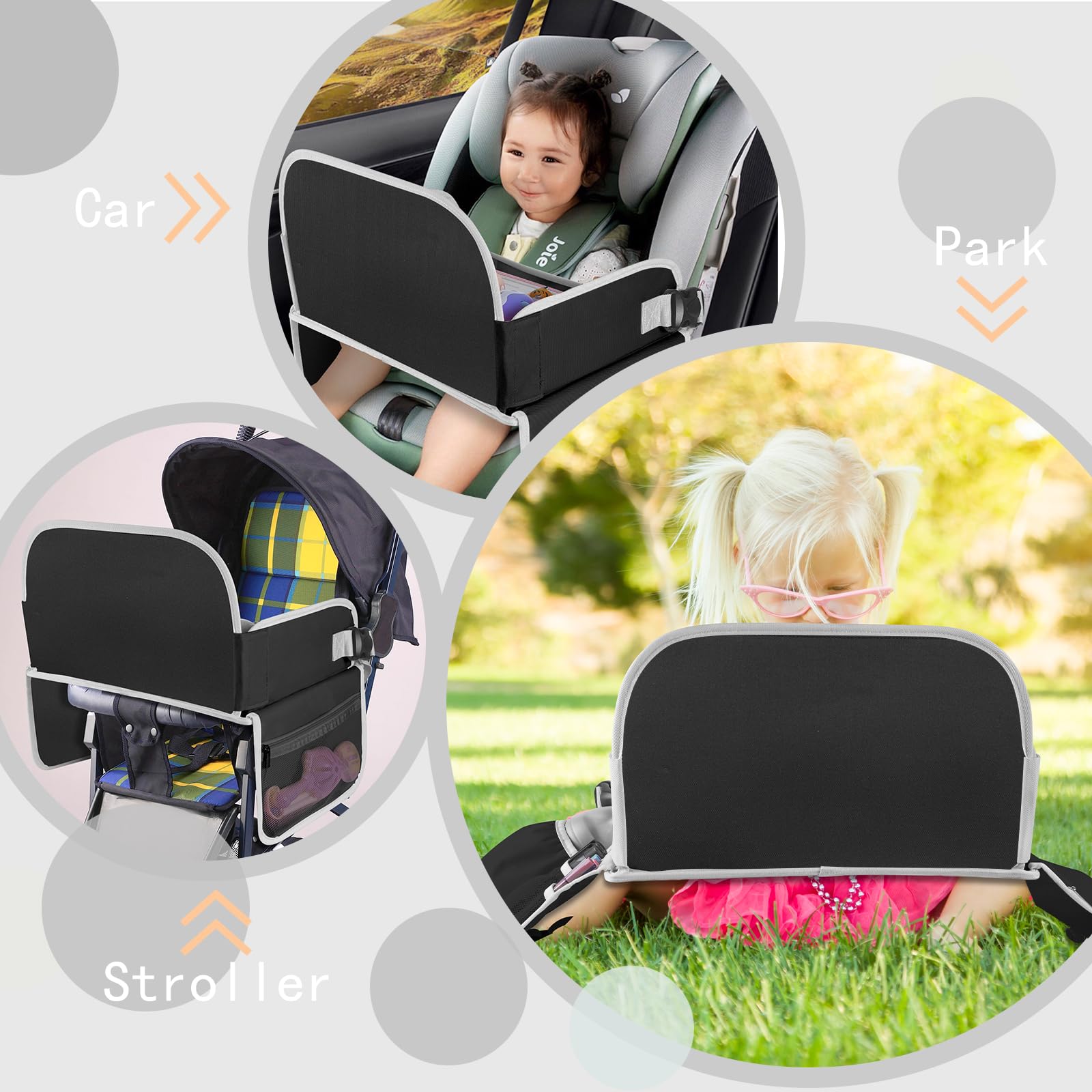 Fits Most Car Seats: The 16.5" x 13" design allows the car tray for kids to fit most car seats and strollers, including toddler car seat 25-60 lbs. In addition, the car seat tray for kids travel also fits in plane, car camping, park camping and so on. MENZOKE kids travel tray for car seat is your travel accessories in traval trip with kids. Simply place the kids travel tray on child's lap and secure the shoulder strap around your child's waist to create an organized space for eating and playing