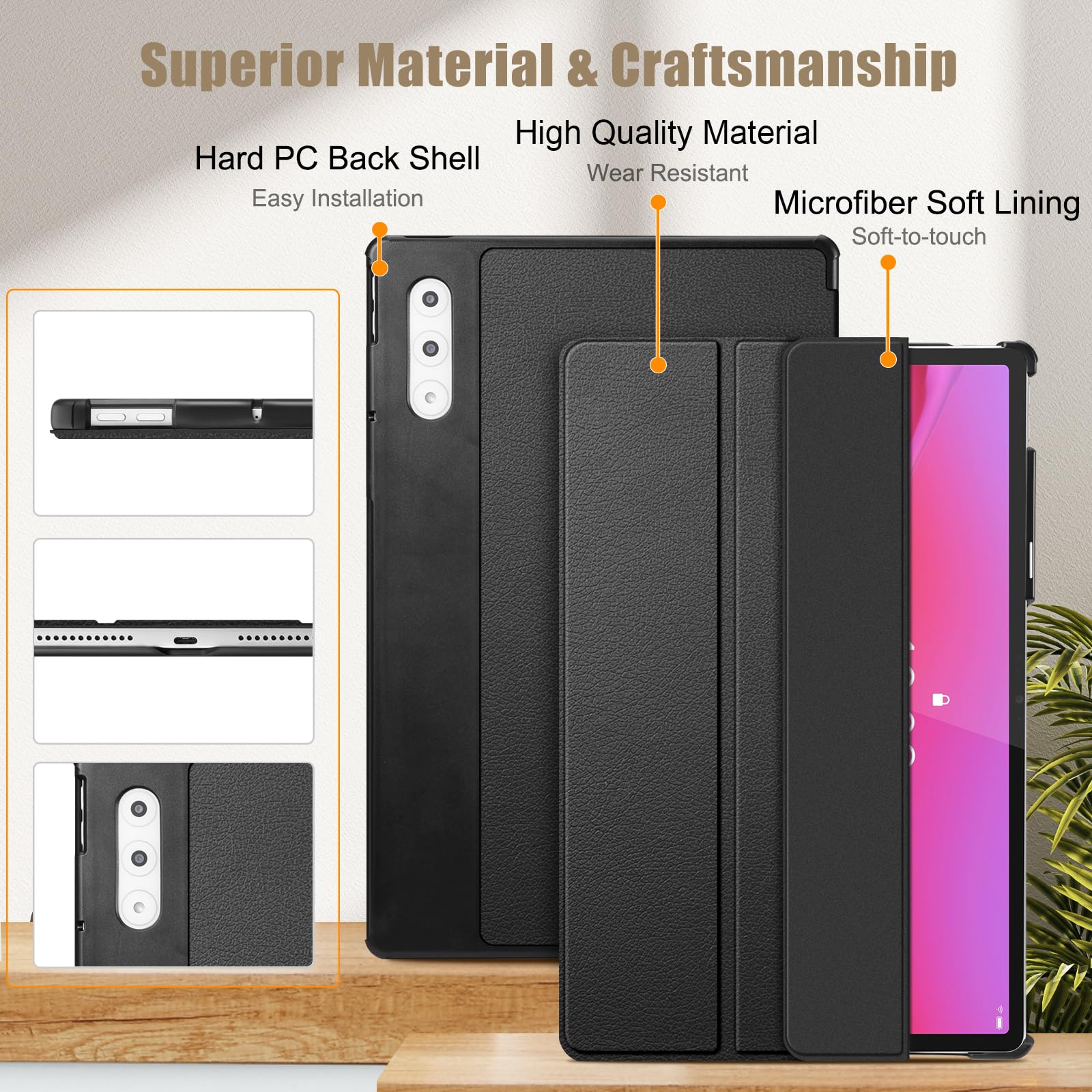 Slim lightweight durable protective hardback with premium quality PU leather. Soft scratch-free microfiber interior adds comfort and an additional layer of protection.