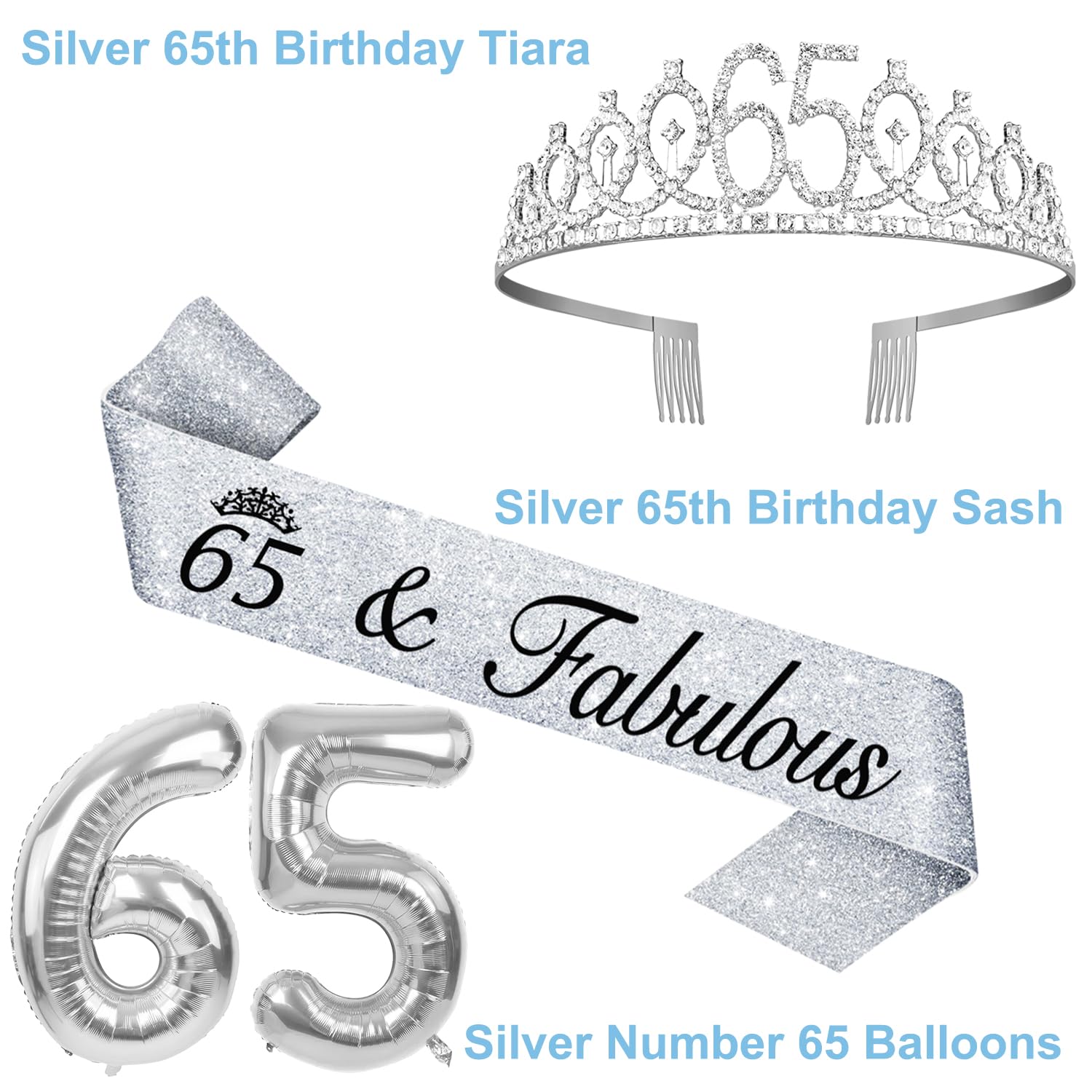 [65th Birthday Decorations Gifts]: This gorgeous silver happy womens 65th birthday decorations gifts will grab the attention of your guests, makes a special and memorable party that neither you nor your guests will never forget. You can also take a look at other birthday decorations at our store