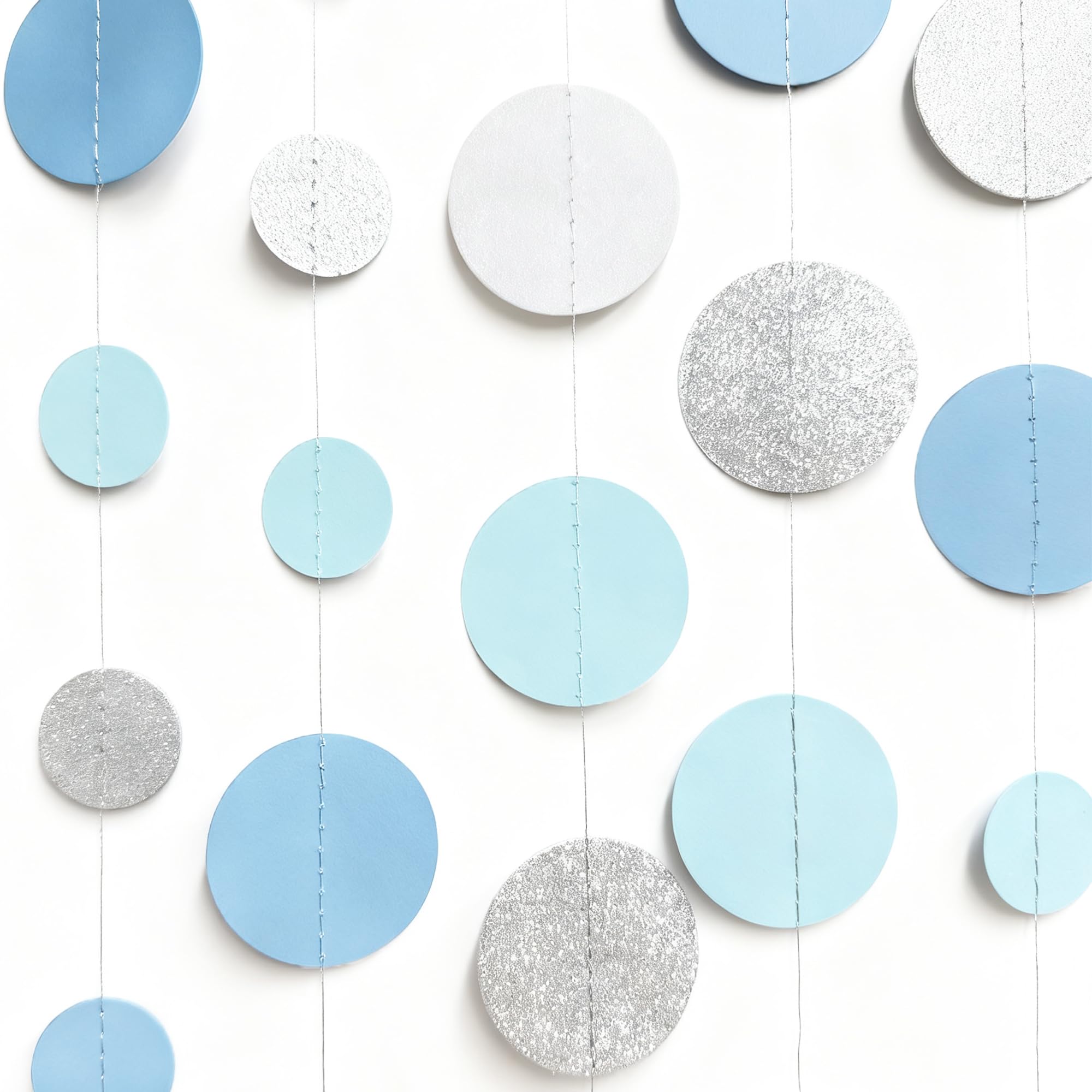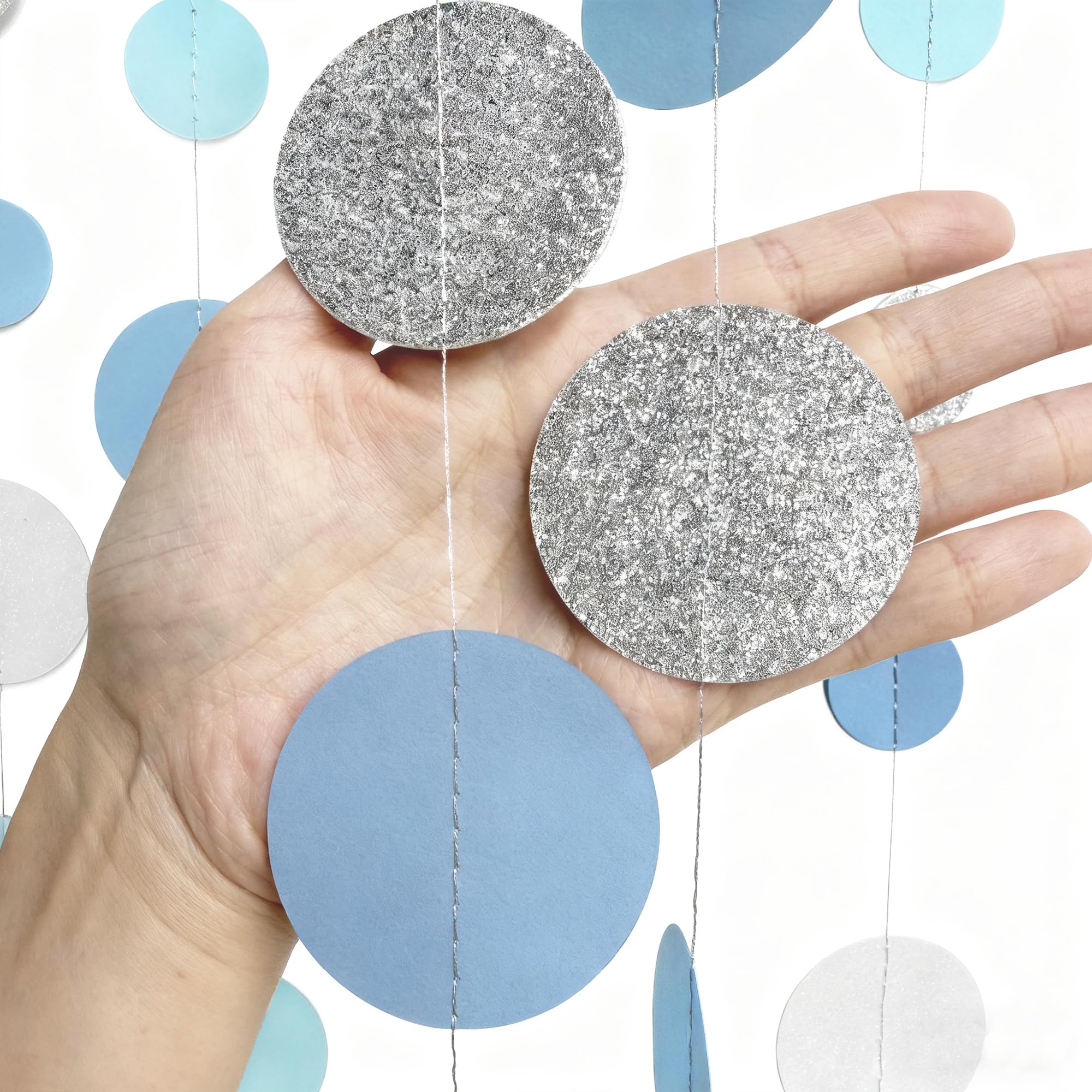 Environmental Material - Our silver blue white dots garland are made of high quality double sided cardstock and glitter paper,,carefully hand-made and machine-sewn together with thread.durable and reusable.