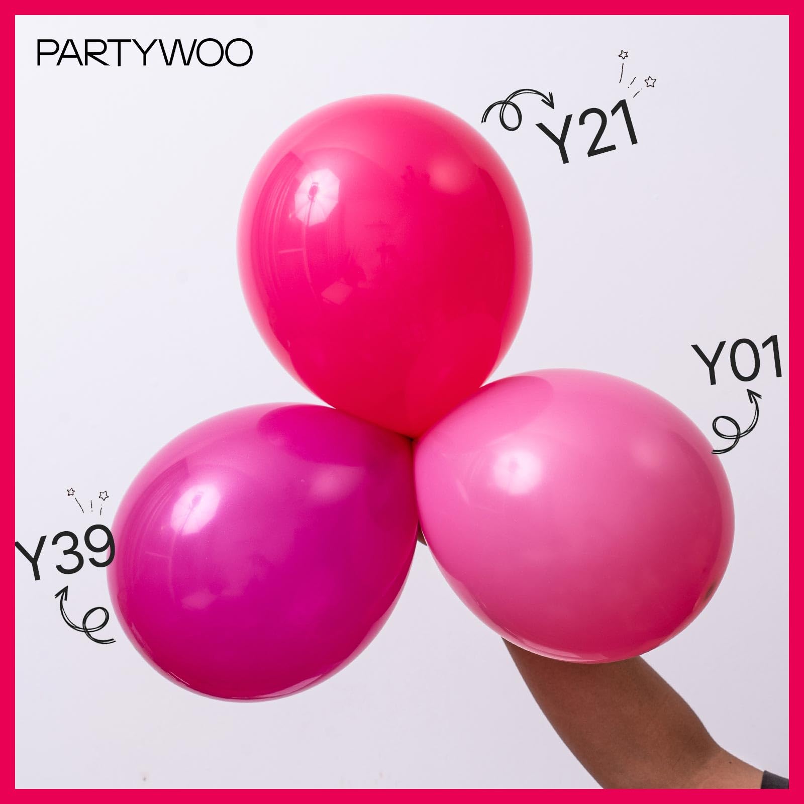 Package includes: 18 inch hot pink balloons (5pcs), 12 inch hot pink balloons (30pcs), 10 inch hot pink balloons (40pcs), 5 inch hot pink balloons (65pcs), can used in birthday. Pay attention the 5 inch balloons could NOT float when inflated with HELIUM.
