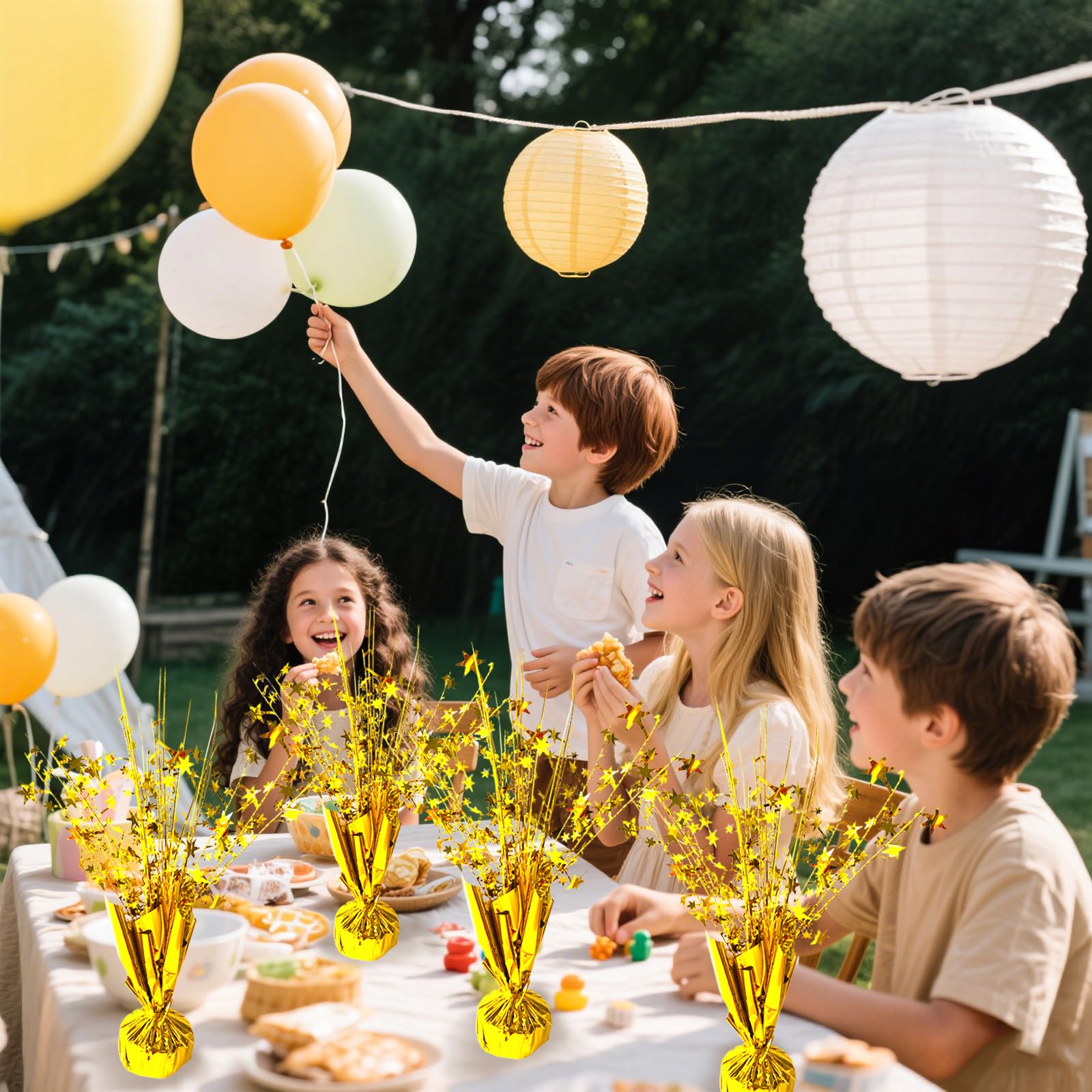 Star Centerpieces Set: 6 pack metallic foil spray centerpiece for tables, decorated with metallic bristles and stars, shining attractive. Enough to meet your needs for multiple festival decorations purposes, table stars decor ensure to create a vigorous festival atmosphere