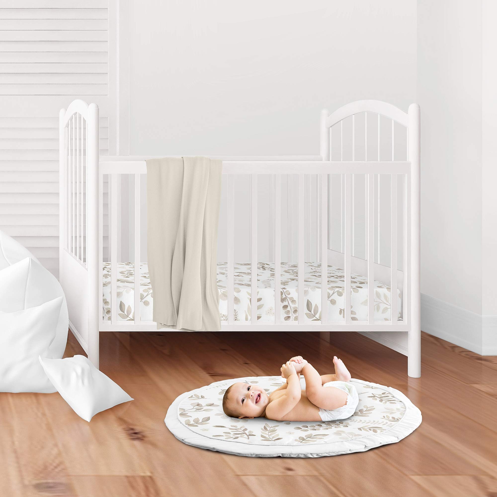 Playmat is designed using an ivory, taupe and white botanical floral leaf print and finished with white piping and border - Brushed Microfiber