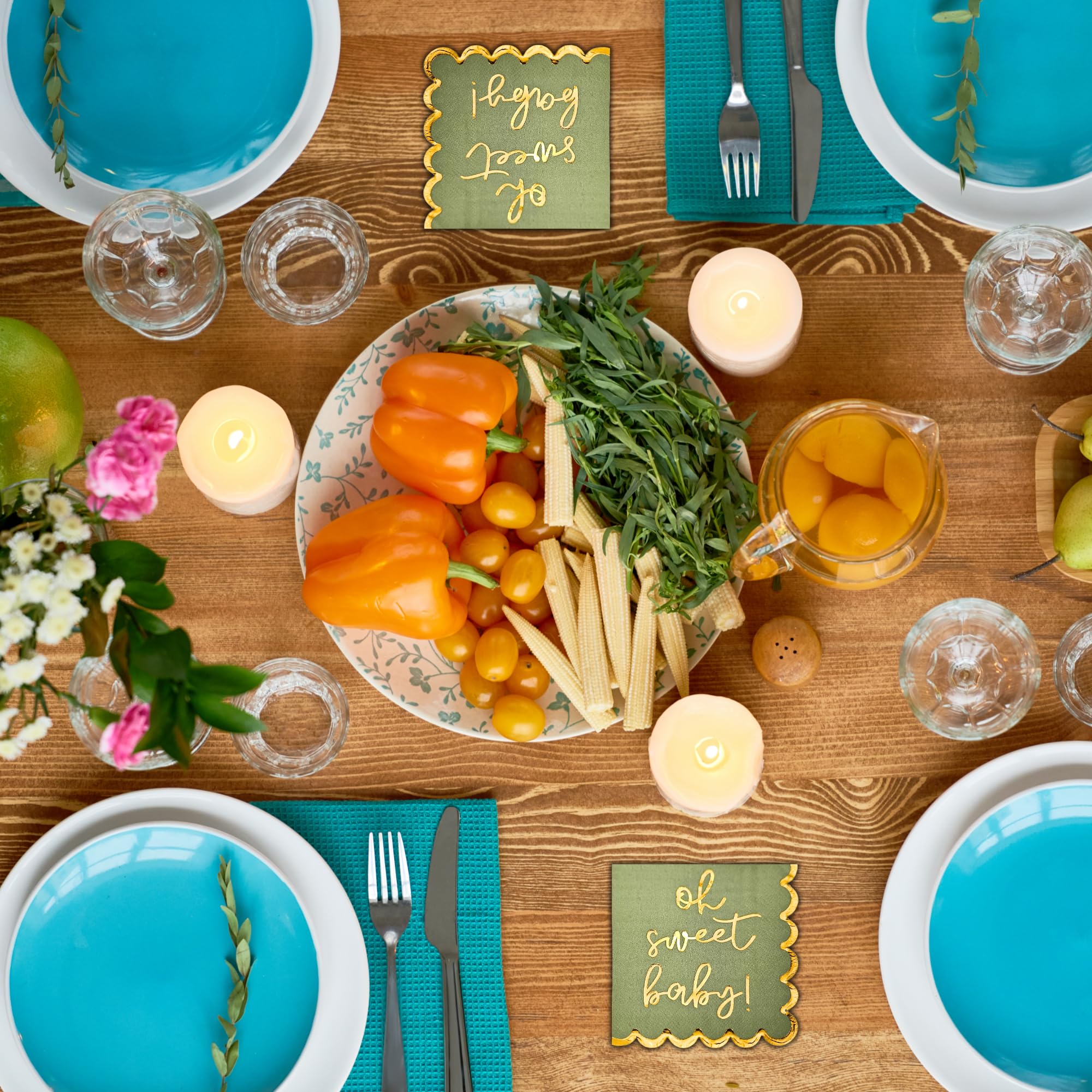 CONVENIENT 50-PACK: Each set includes 50 scalloped sage green napkins, making it great for parties of all sizes. These disposable baby shower napkins help with a hassle-free cleanup after the party while looking stylish.