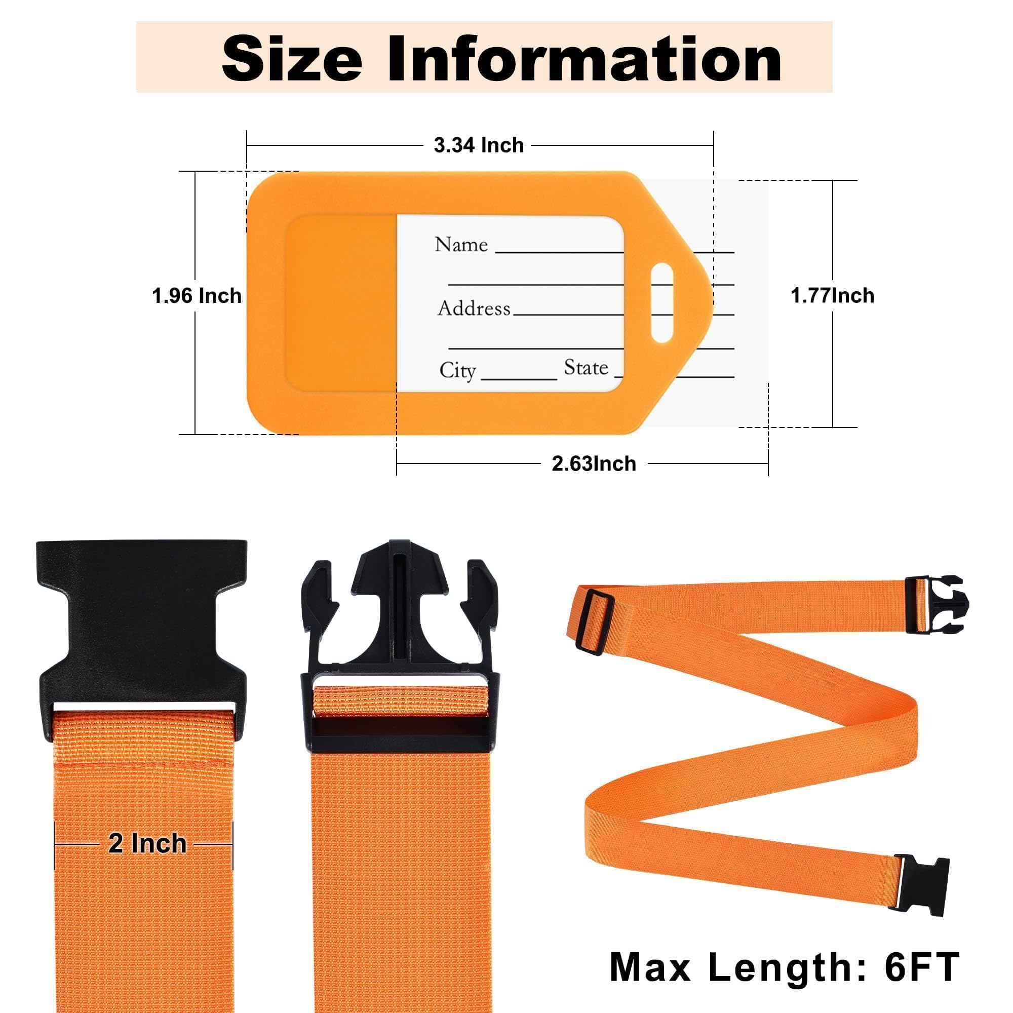 Adjustable Length: The 6ft long, 2" wide luggage belts feature an adjustable design to accommodate a variety of suitcase and bag sizes; Customize the length to ensure a secure, snug fit that prevents sliding or loosening of your luggage
