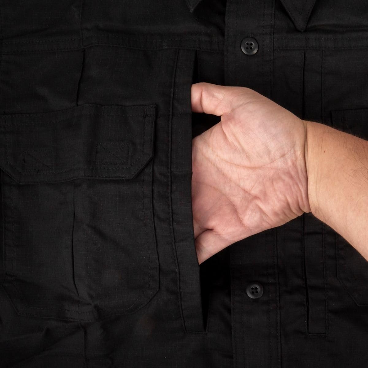 Two box-pleated chest pockets with hook and loop closure - Two Hidden Chest Pockets with hook and loop closure