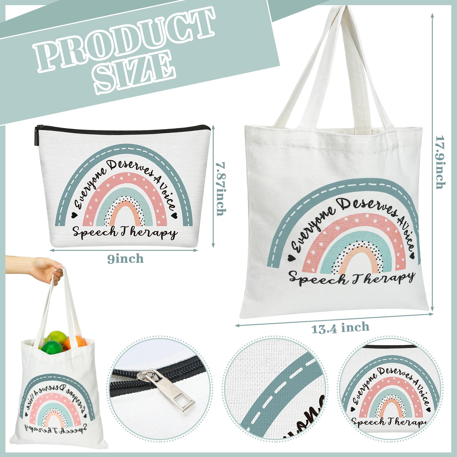 Speech Pathologist Gifts: our speech therapy tote bag and makeup bag set with distinctive rainbow pattern and [Everyone deserve a voice], [Speech Therapy] phrase, is the ideal present for speech pathologists; Make most occasions, be it birthdays, holidays, or graduation, special with this thoughtful gift, without compromising the practical use