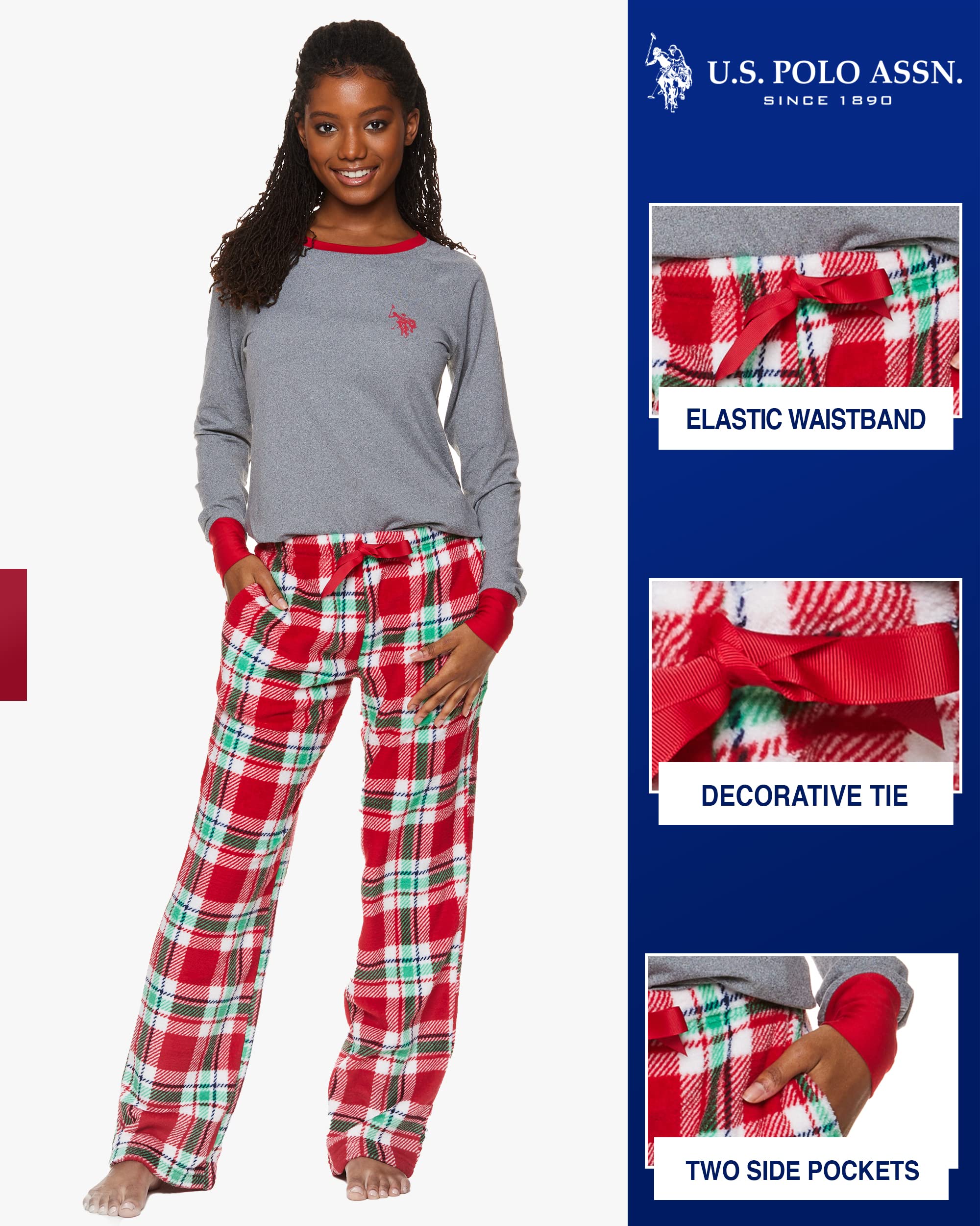 Description The U.S. Polo Assn. Ladies Pajamas Set is a stylish and comfortable choice for lounging, resting, or sleeping, making it a perfect womens sleepwear gift for yourself or someone special. This 2-piece pajama set for women includes a cozy, long-sleeve pullover top featuring the iconic U.S. Polo Assn. logo, along with full-length pajama pants that come with or without pockets. Designed for ultimate comfort, the pajama pants feature an elastic waistband and a relaxed leg fit. Made from machine-washable fabric, these pajamas are easy to care for, and their comfort and style make them an ideal gift for the holiday season, whether for mom or any woman on your list.