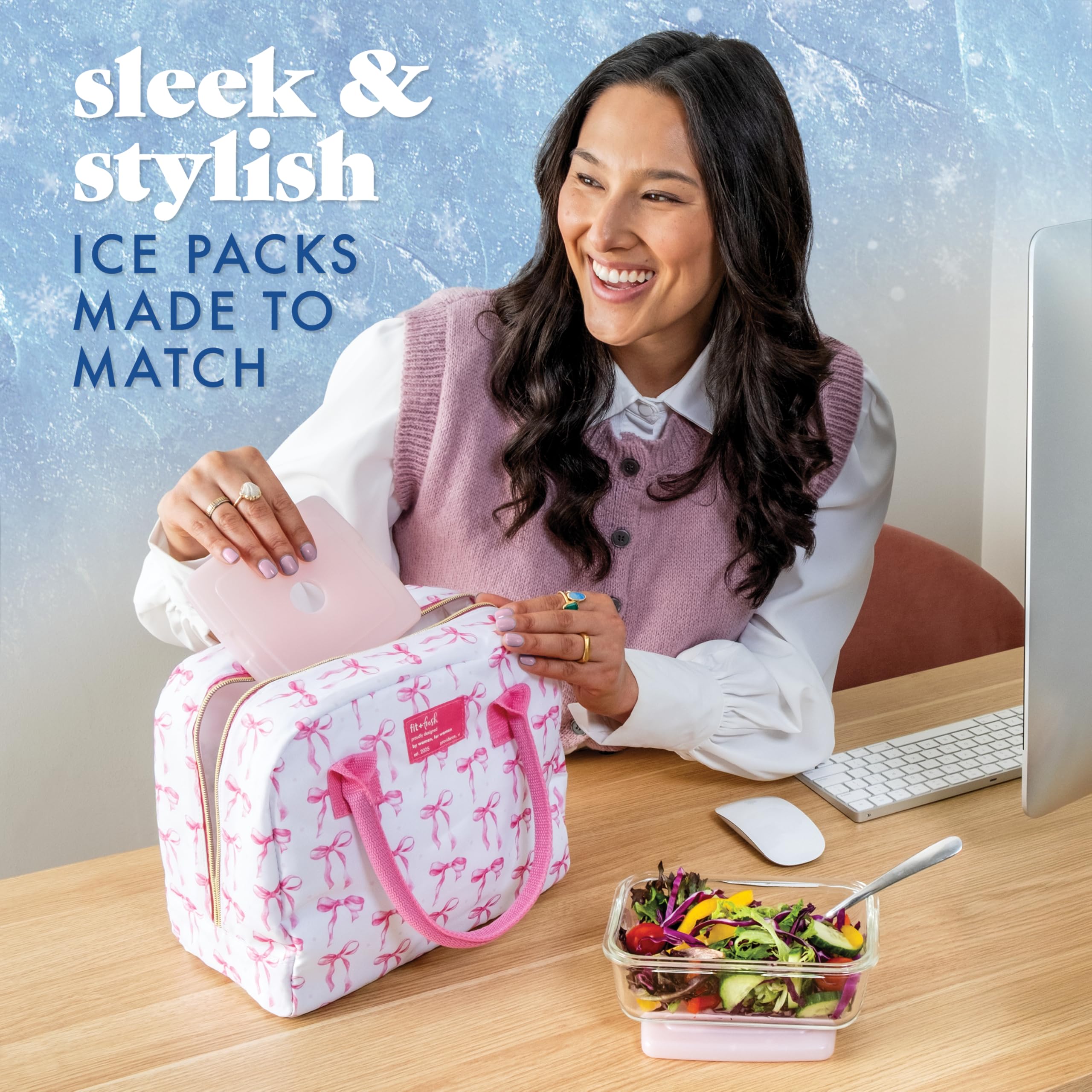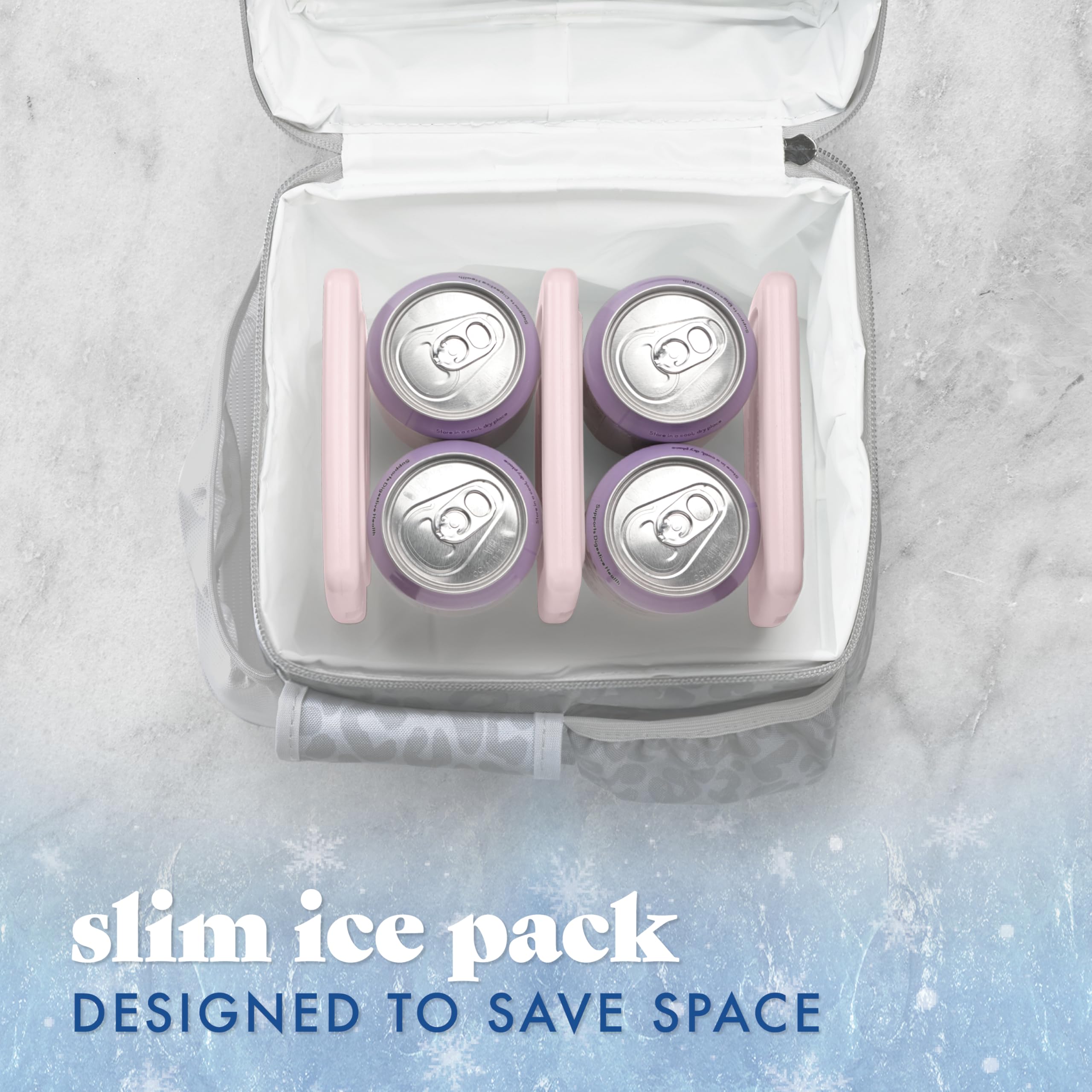 REUSABLE ICE PACK - Set includes 4 slim ice packs for lunch boxes. Sized at 5” x 0.5” x 4.75” their ultra-thin design slides easily into any bag for max chill without the bulk. Made in neutral colors to match our stylish fit & fresh lunch bags.
