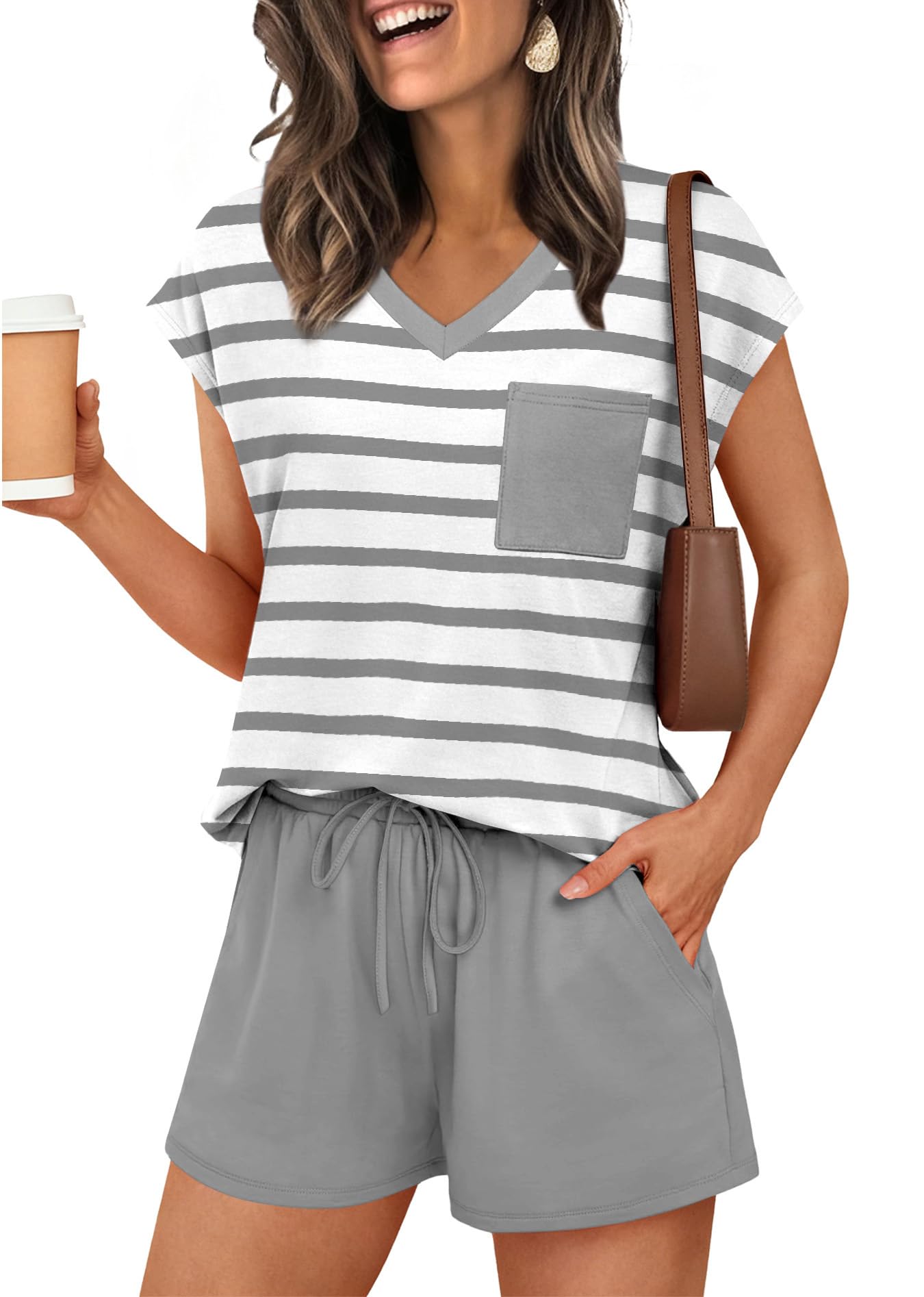 Design: Side-pocket shorts with relaxed fit & adjustable drawstring offer comfort and convenience; the trendy V-neck cap-sleeve top also works as a chic summer piece