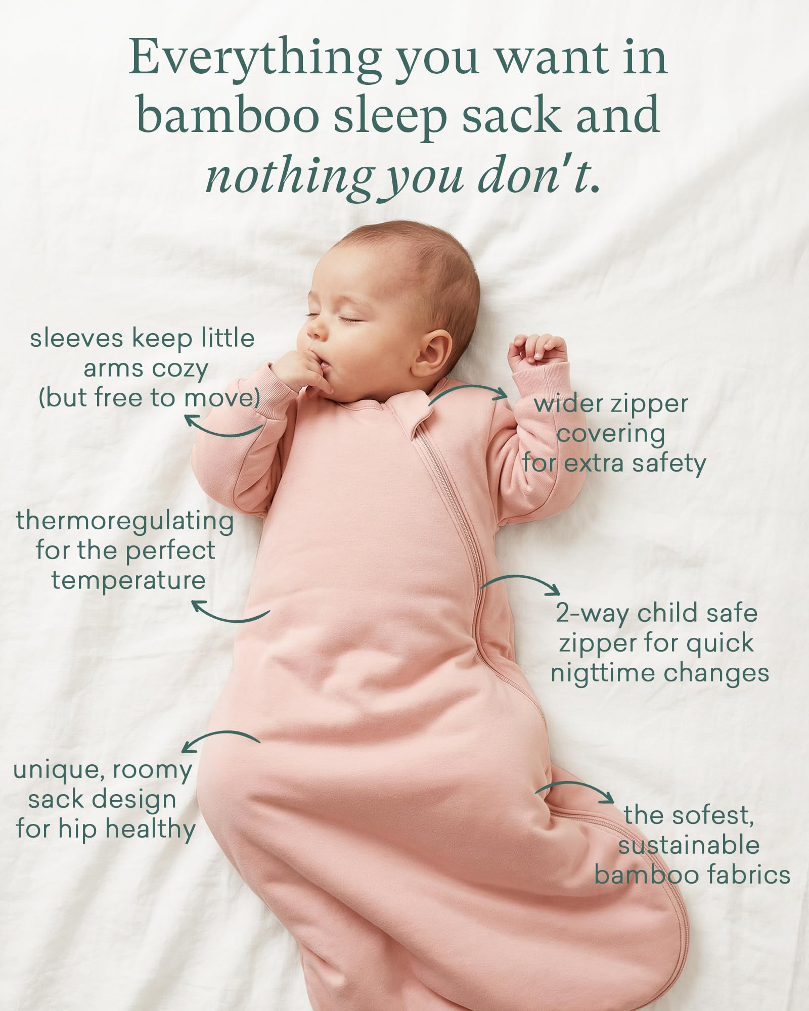 BETTER THAN EVER: Our beloved baby sleep sack with sleeves, the epitome of comfort for your little one. Crafted with care, it's a cozy cocoon designed to cradle your baby in warmth and security, guiding them into a restful slumber that lasts all night. Simplifying nighttime diaper changes and ensuring optimal temperature regulation, its heavenly softness invites your touch, offering unparalleled comfort for your precious bundle of joy.