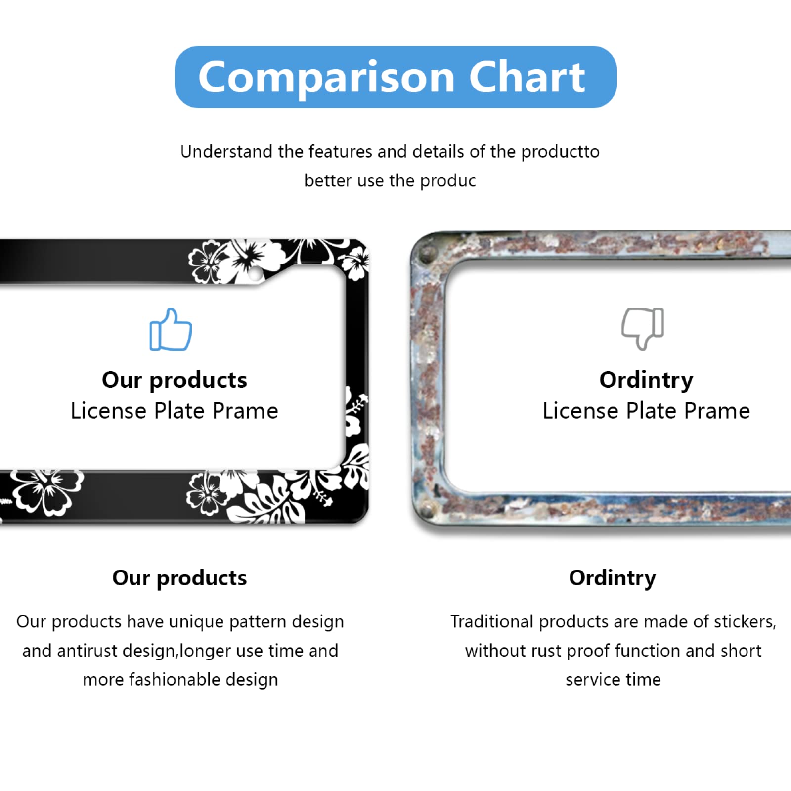 【Standard License Plate Size】:Our license plate frame size is 12.2 x 6.3 inches. This license plate frame will fit most of the standard license plates in the United States and Canada, and perfectly match your car license plate accessories.