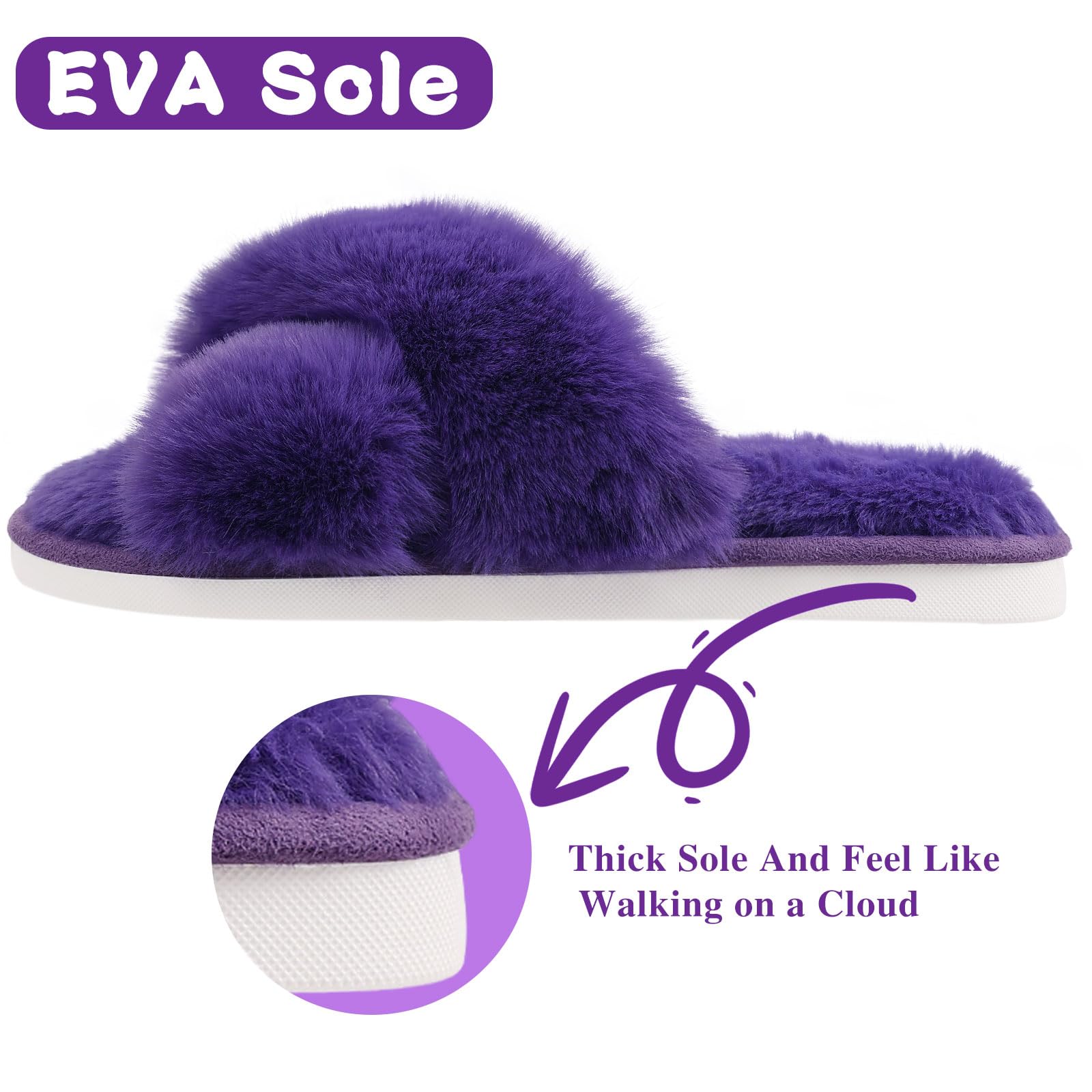 FUZZY HOUSE SLIPPERS: Fuzzy faux fur upper and footbed surround your foot in cloud comfort, making your feet cozy. A good choice for reducing muscle fatigue after a long day of work.