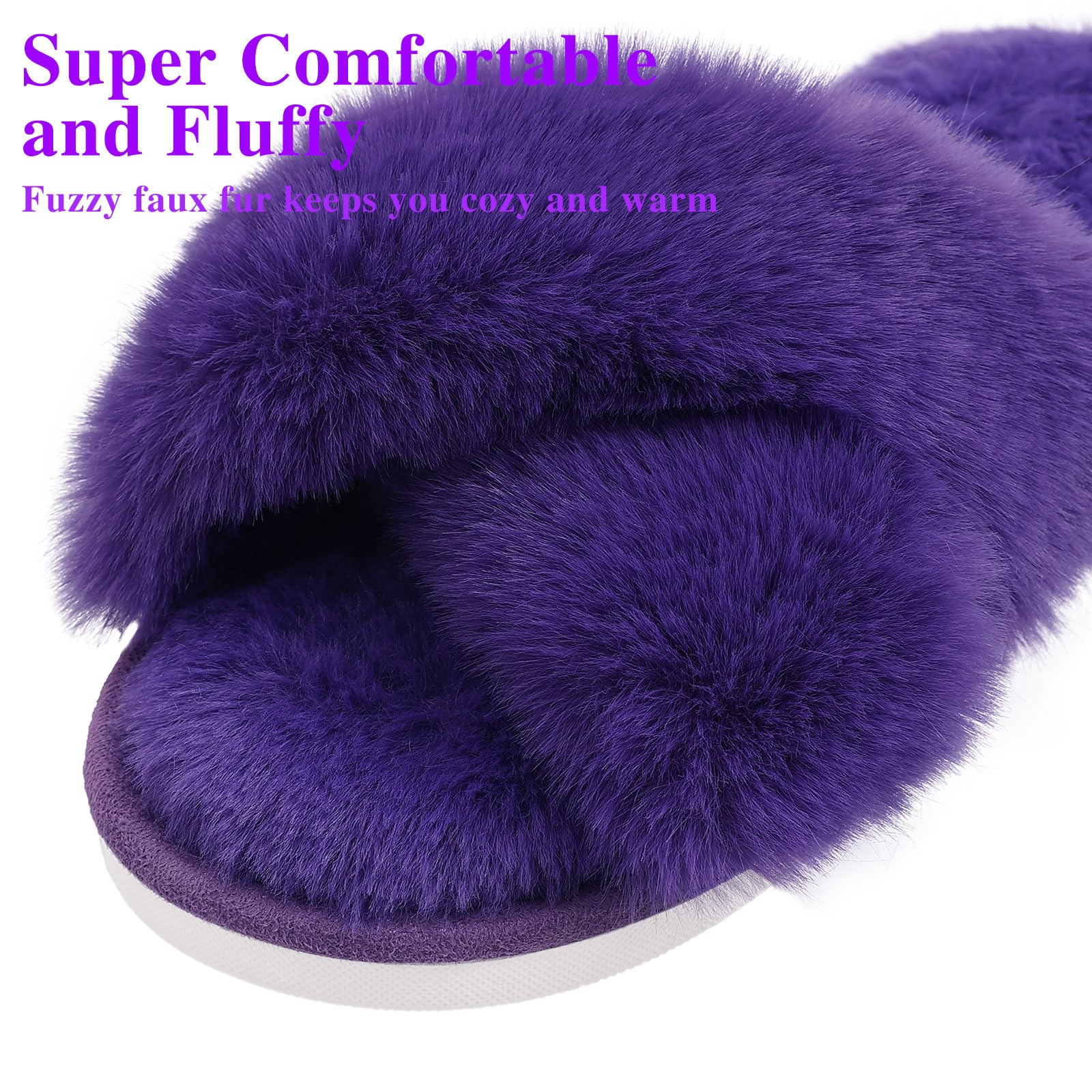 FASHION & ELEGANT: Breathable open-toe along with trendy faux fur design makes these womens slippers stylish and practical. Easily slides in whenever you want your feet relaxed.