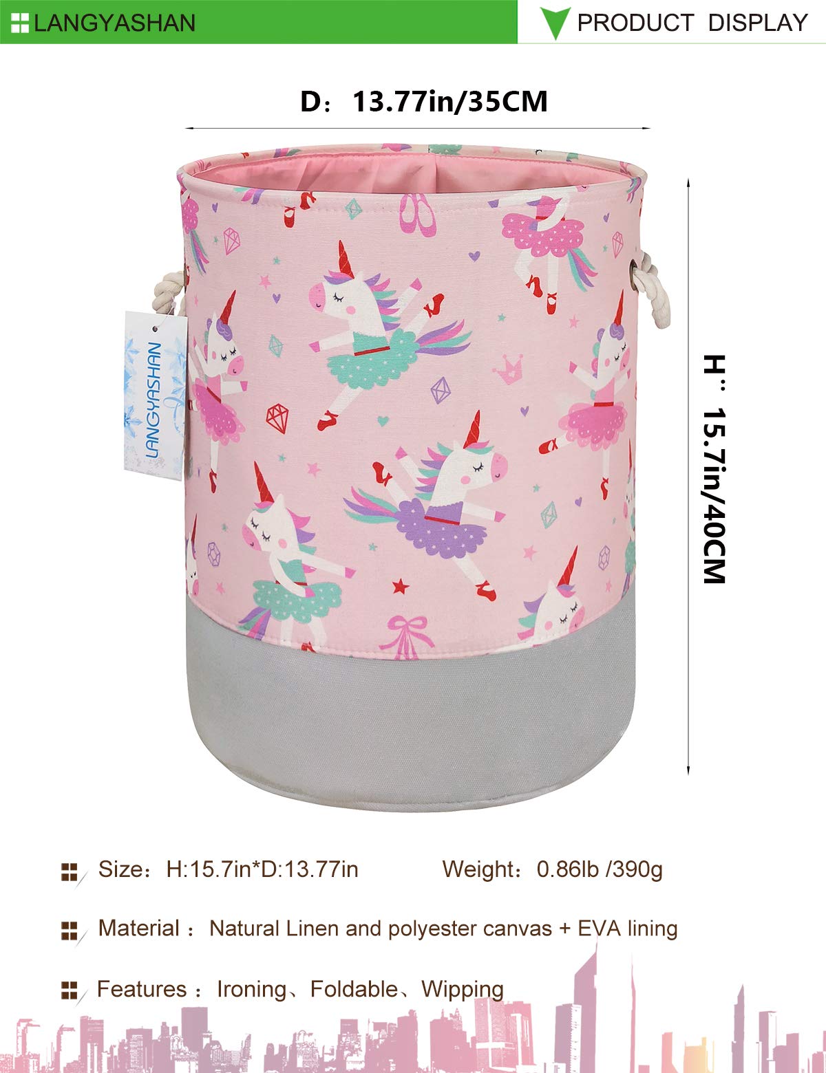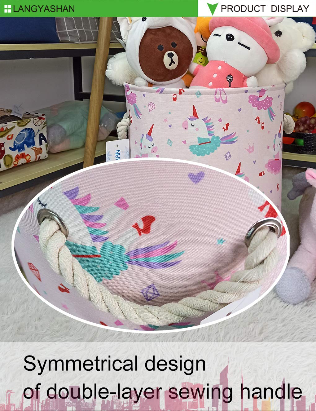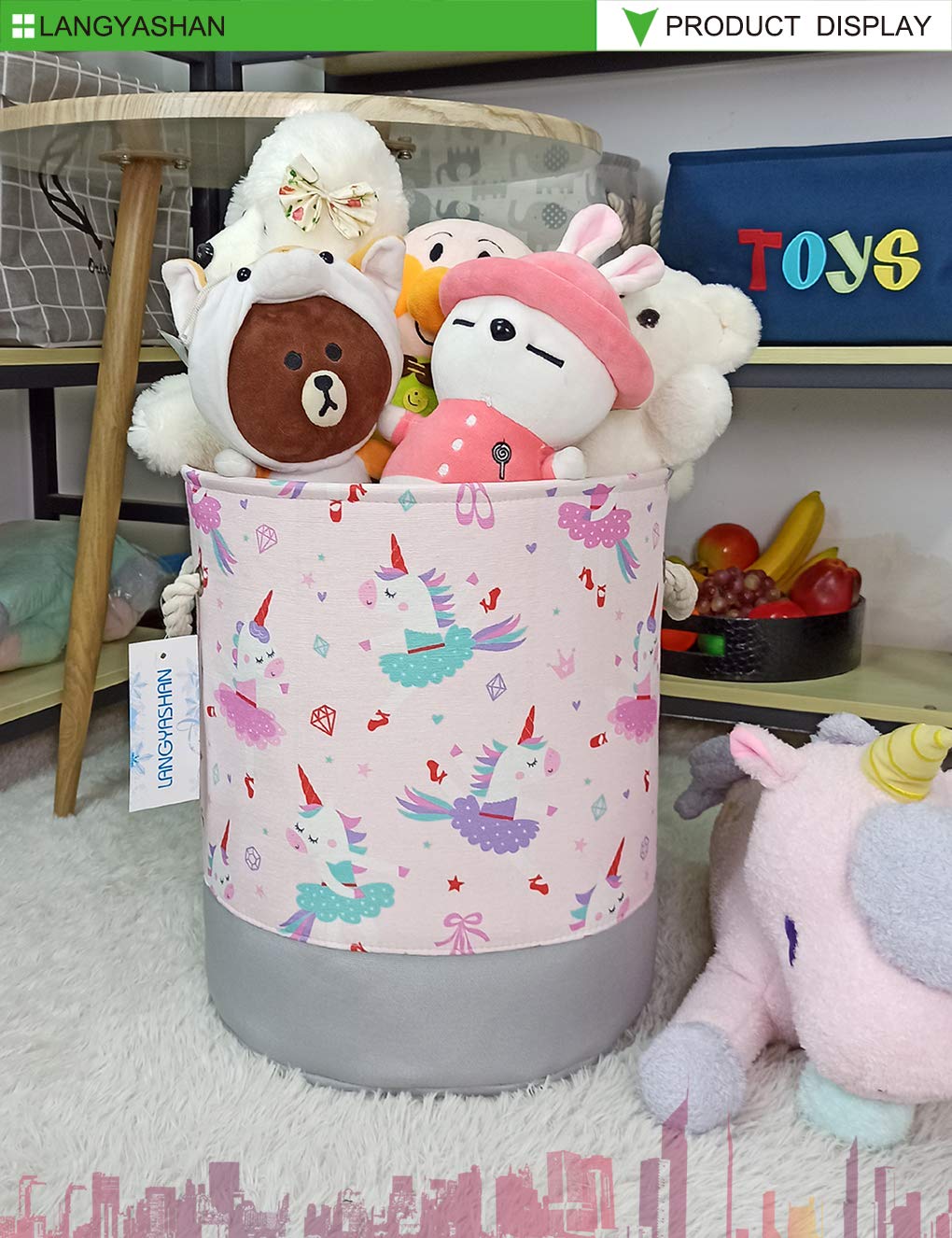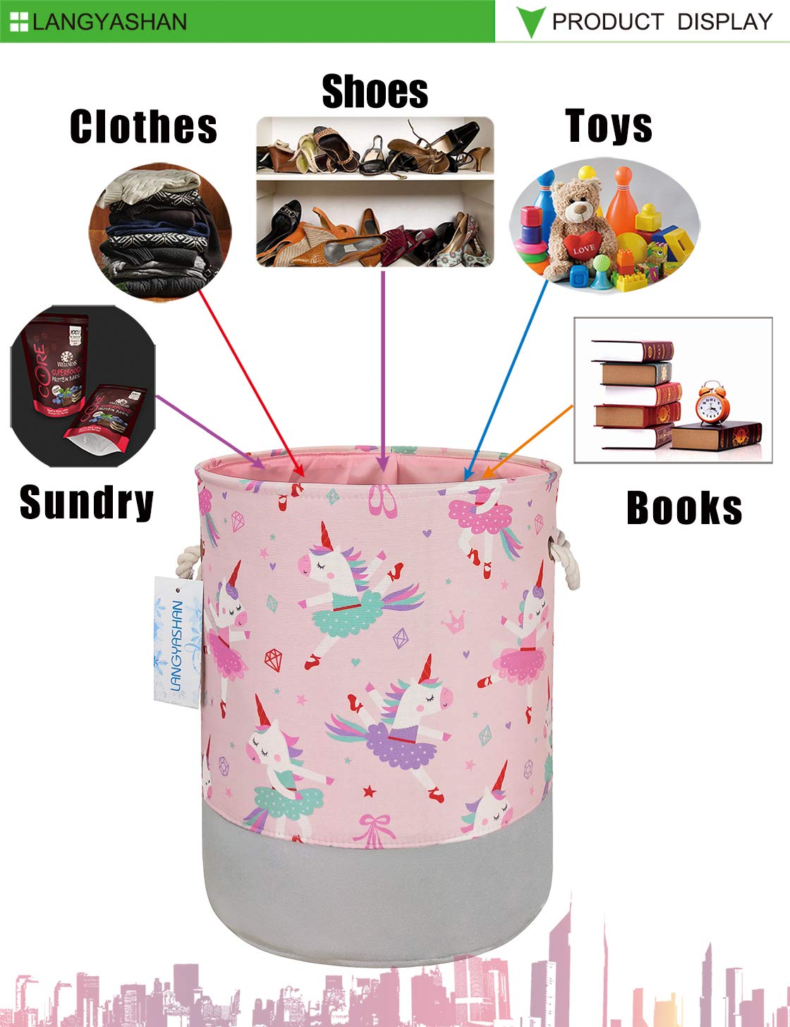Functional and Stylish: LANGYASHAN storage basket helps organize kids clothes and toys, simple addition to the kids room and it holds toys in. It's good starter hamper if teaching children to pick up behind themselves. It is a great storage basket for small kids.The laundry hamper provides attractive and lightweight solution to many storage needs,home textiles storage, toy storage.