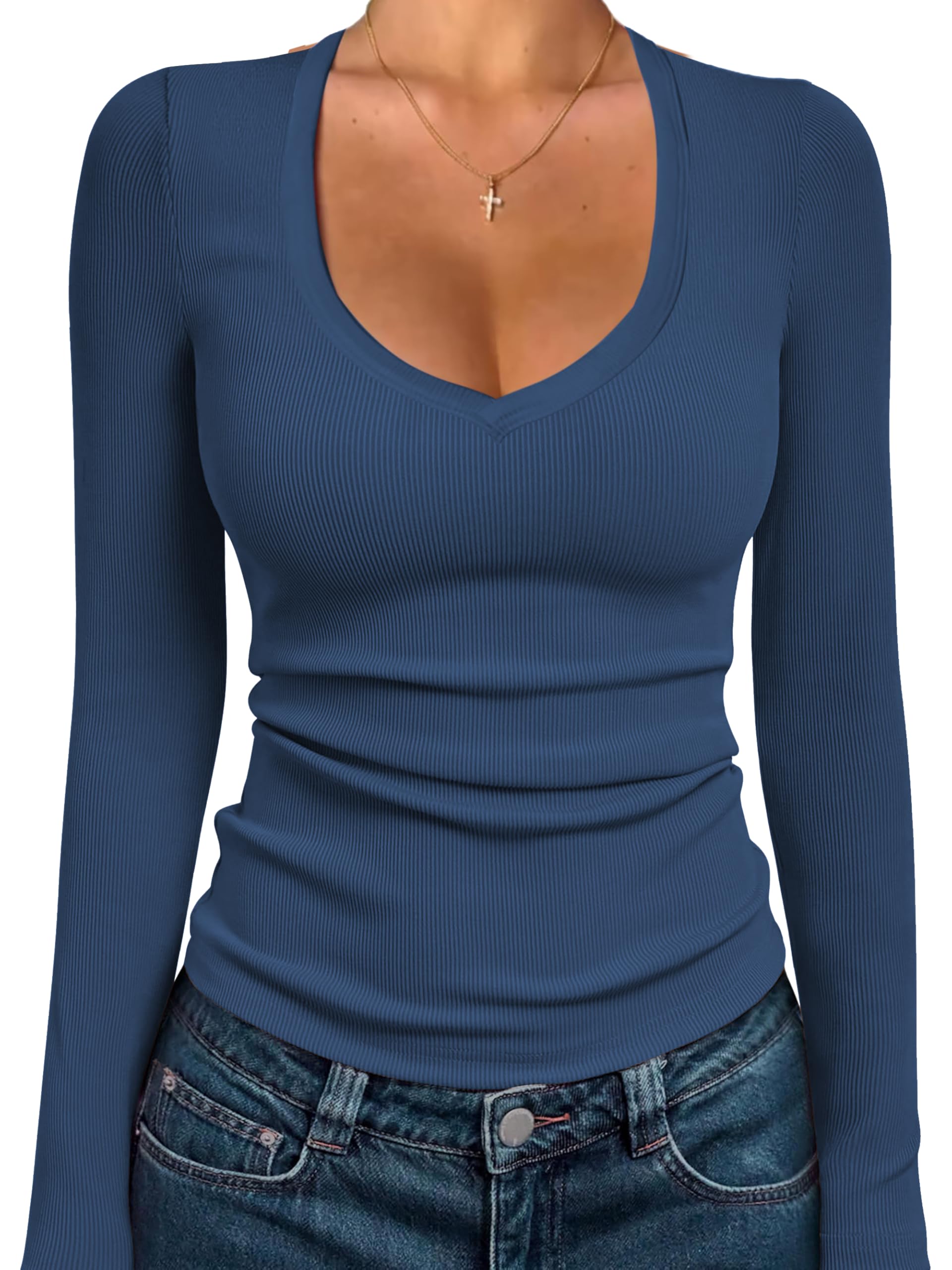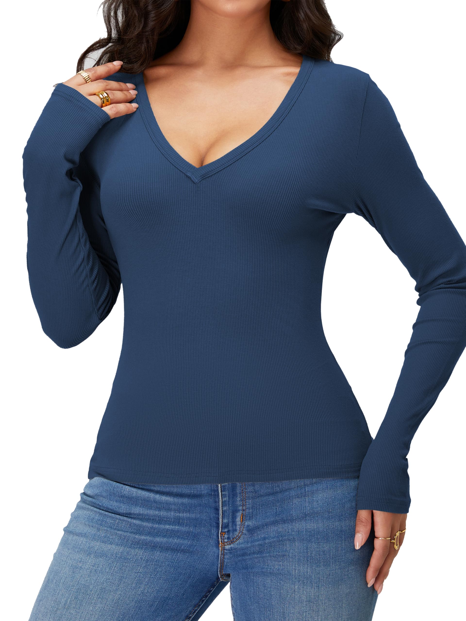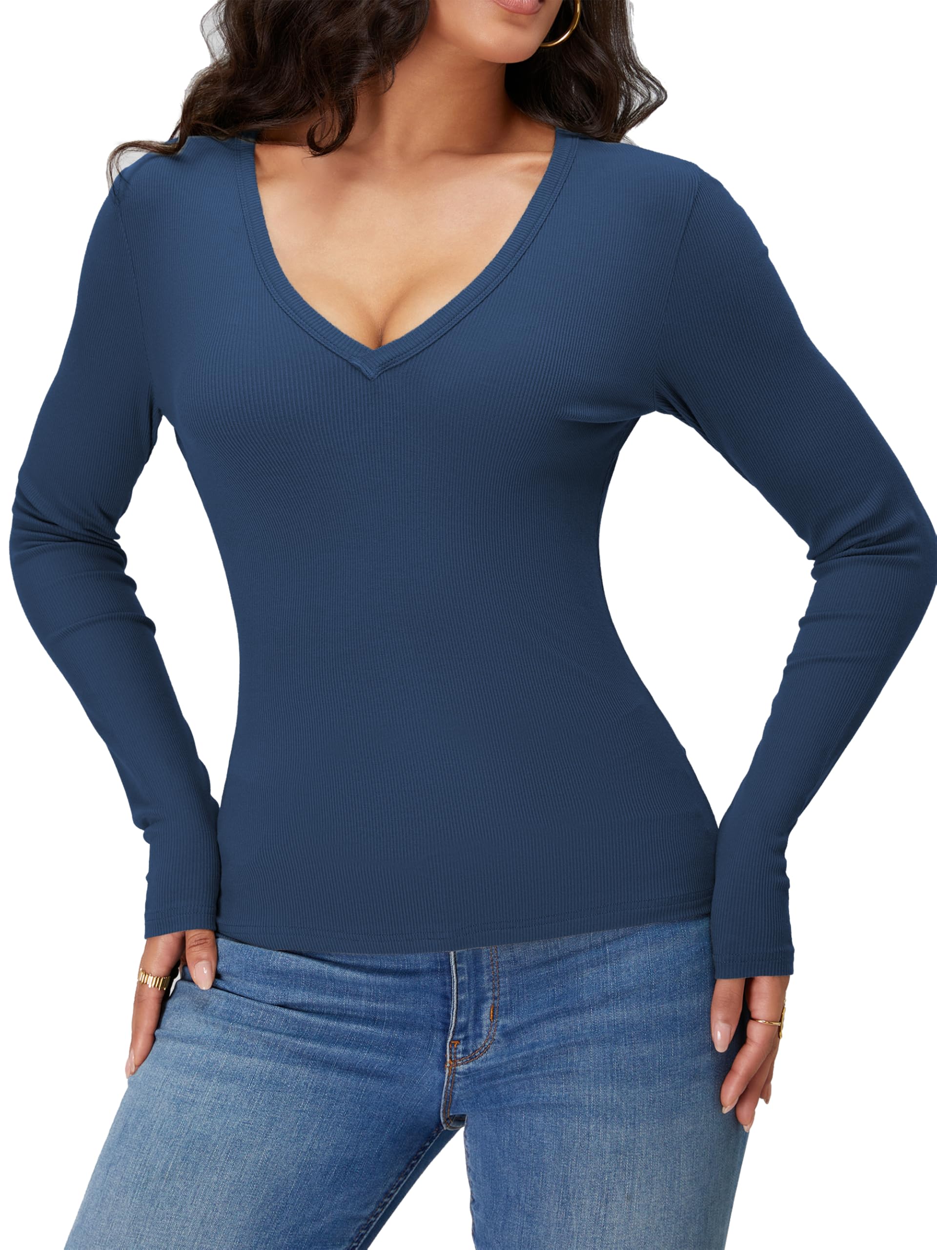 Features: Long sleeve, V-Neck, Solid color, Slim fit, Ribbed knit, Simple and Basic Tops for daily. It's Comfy Against the Skin, Nice for Laying or Inter Hoodies/Shackets.