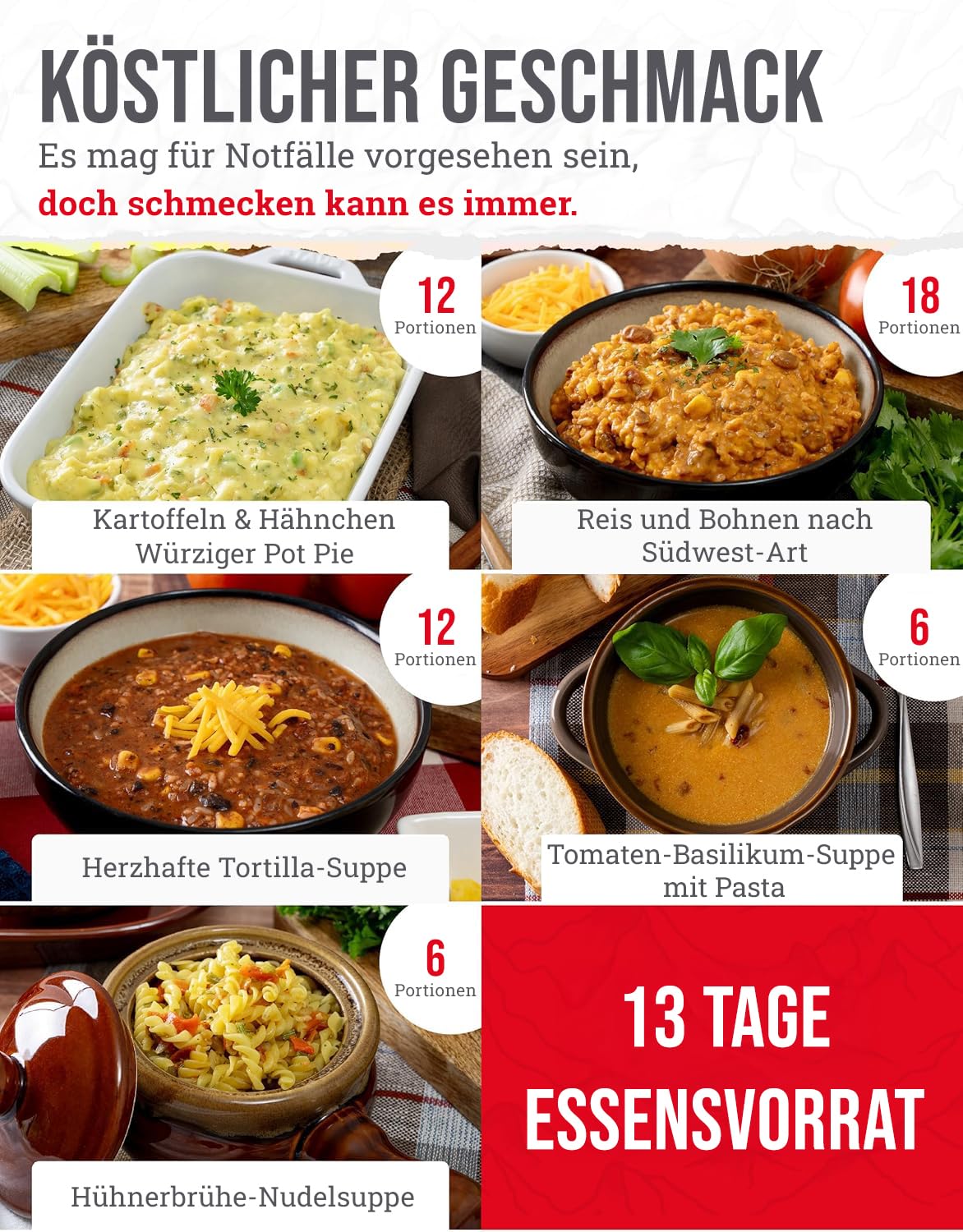 ENJOY NUTRITIOUS MEALS: Our emergency supplies offer convenience and tasty, nutrient rich options, including Cheesy Macaroni, Lasagna, Teriyaki Rice, and Chicken Flavored Noodle Soup! Perfect for travel necessities, as well as home and kitchen use.