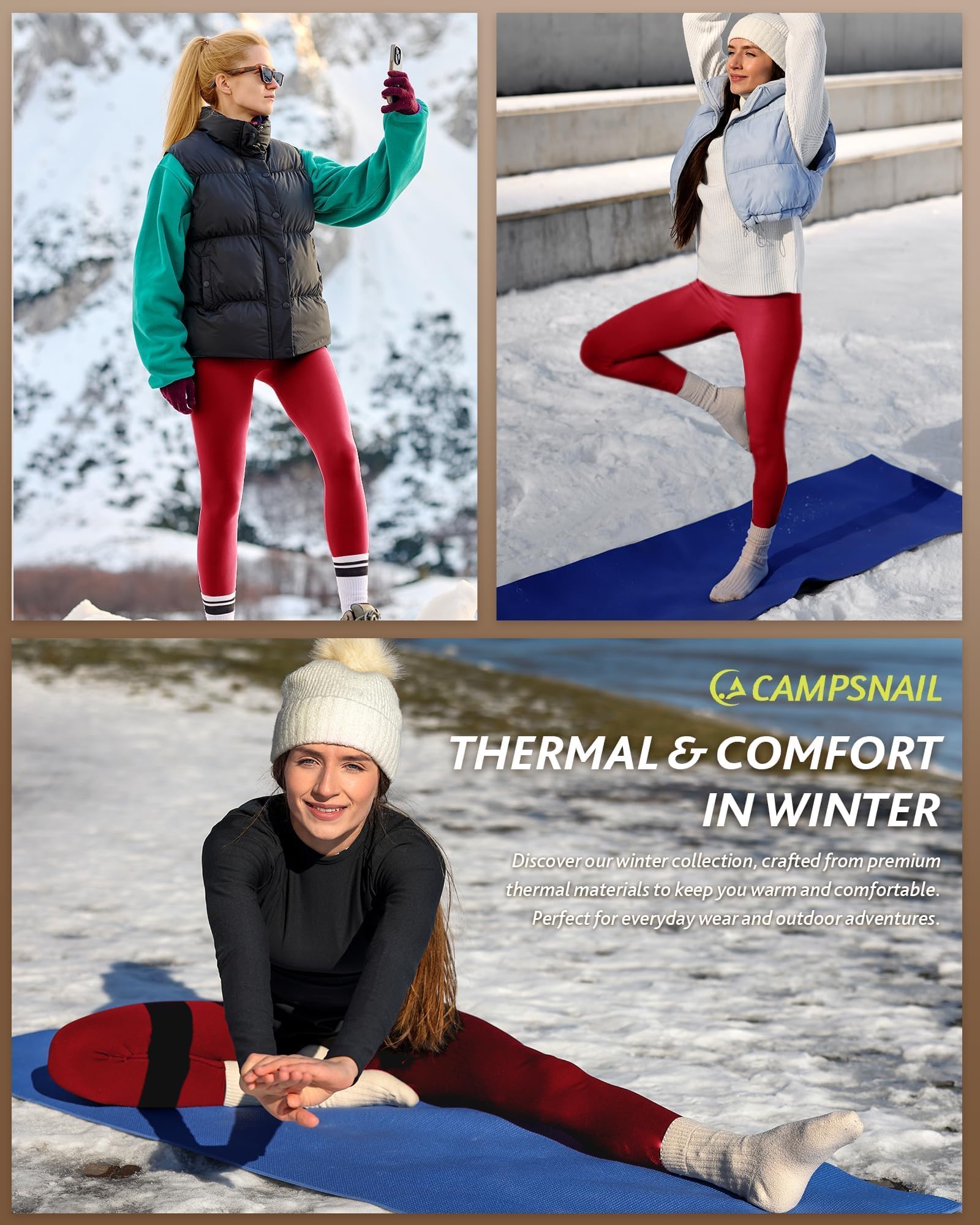 Thermal Fleece Lined Leggings: CAMPSNAIL leggings for women featured a thicked fleece interior to trap heat, keep you warm and comfortable in cold weather. Perfect for hiking, yoga, biking, outdoor running, or trip in winter