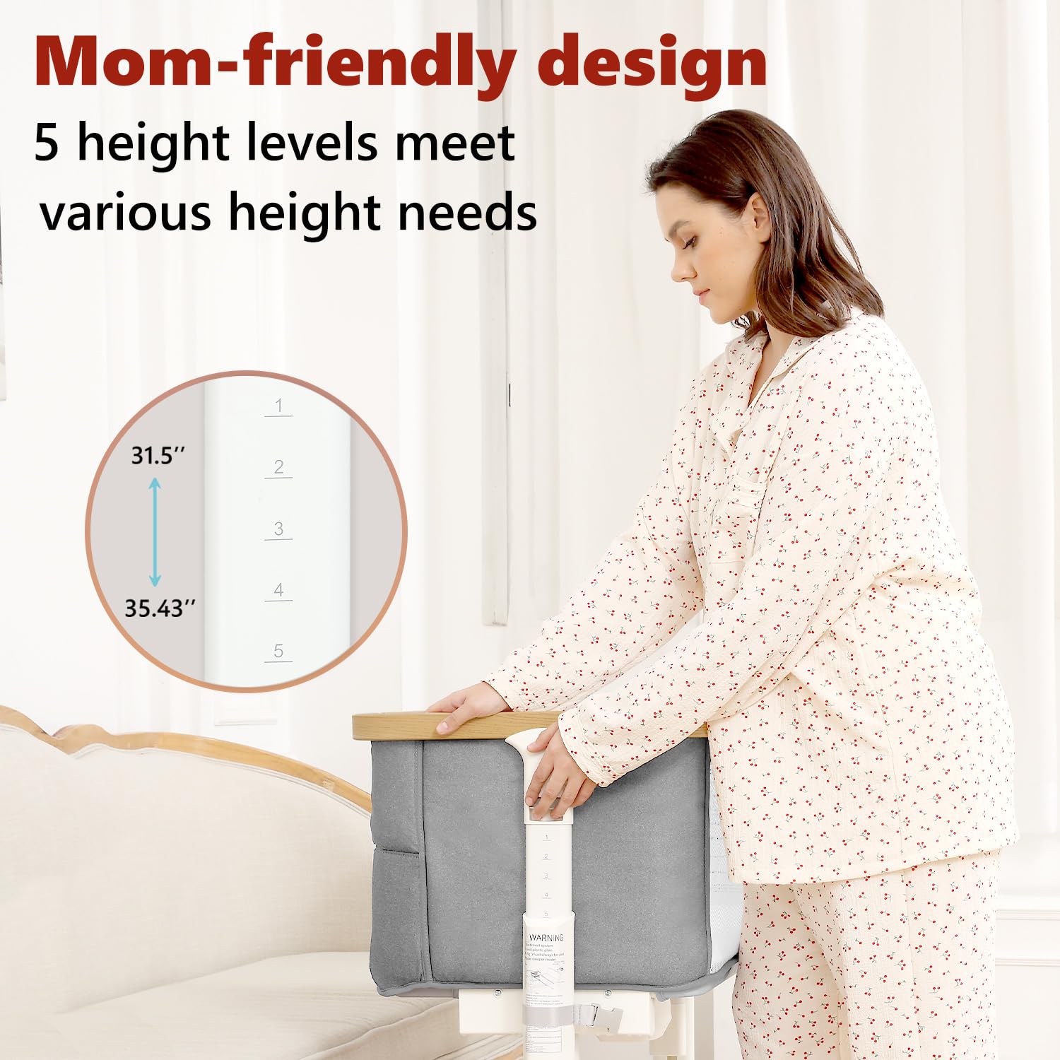 5 Height Levels - With 5 height adjustments, the bassinet bedside sleeper securely attaches to the parent's bed, perfect for cosleeping and nighttime nursing.